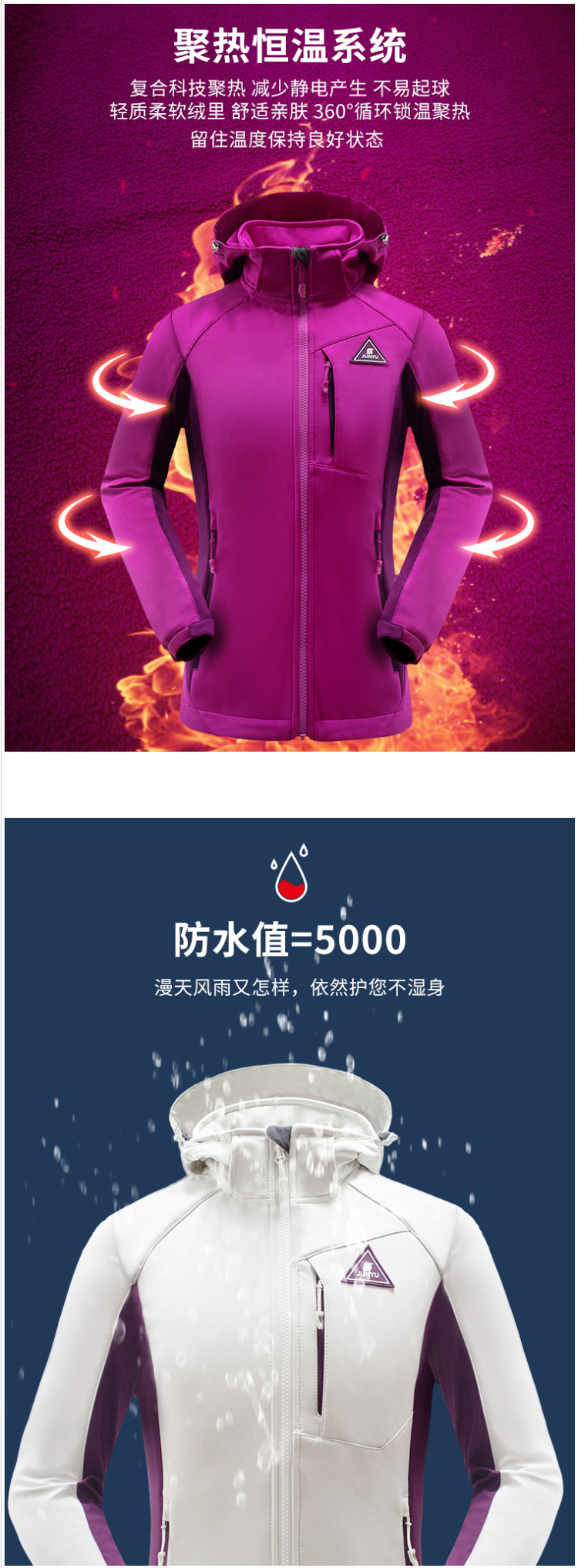 在版型和设计方面,这款软壳是修身版型+立体剪裁。连帽设计但可拆卸,不喜欢或不需要可以拆。魔术贴袖口,松紧随心调节,下摆也带有可调节弹力松紧扣,可自由调节并且防风保暖。