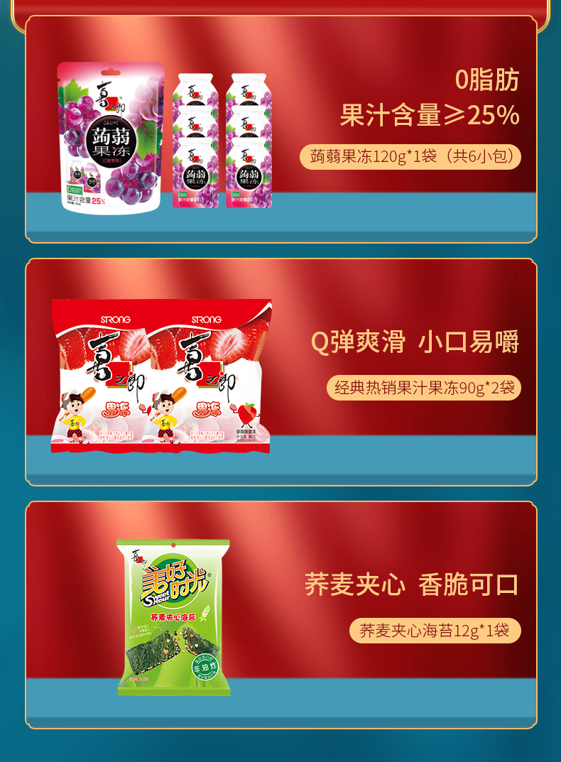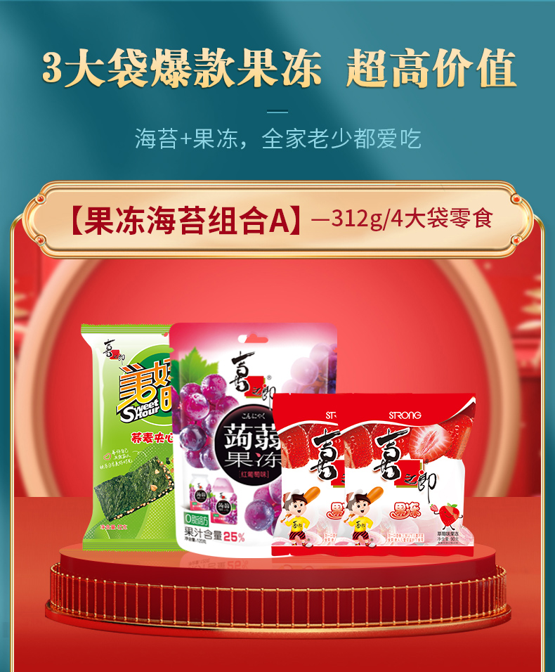 天猫喜之郎食品旗舰店100元,搭配店内满减,可领30元优惠券,拍3件实付29.7元到手。4款组合可选。线下商超同款,小盆友最喜欢的零食。