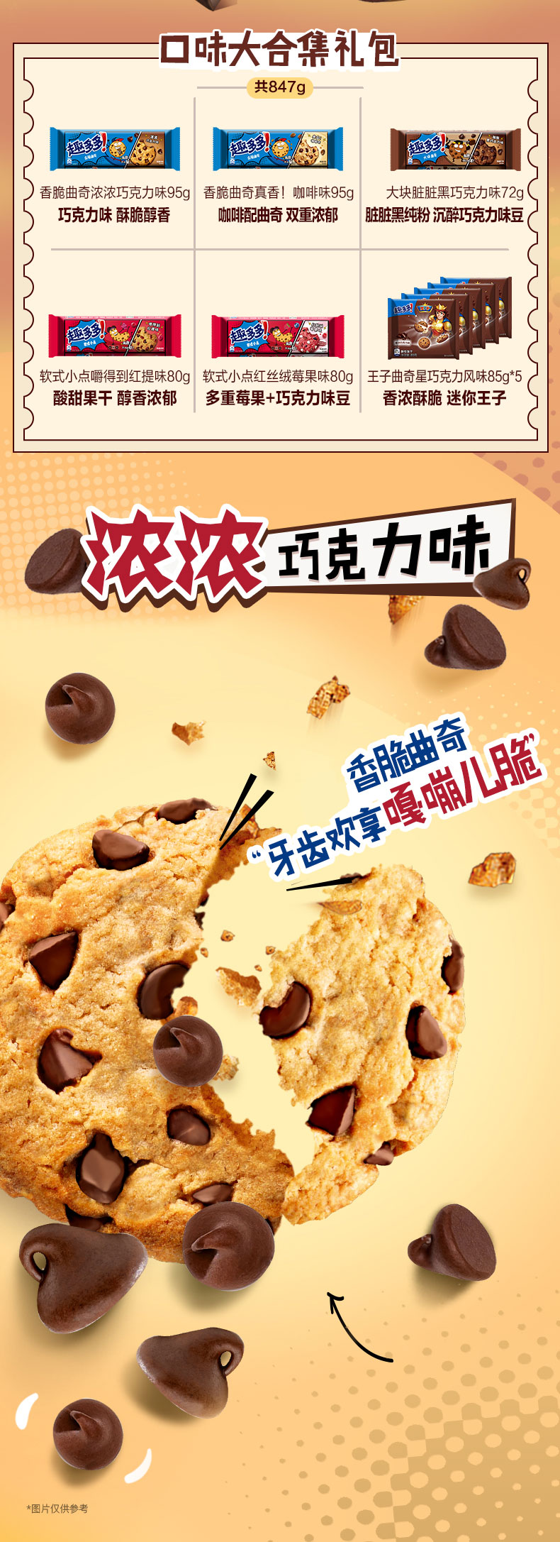 6种口味组合,表情包设计,逗趣十足。这款趣多多咖啡味曲奇,是广受欢迎的曲奇饼干,集酥松的奶油曲奇和香醇的巧克力于一身,由卡夫食品出品。需注意趣多多中的巧克力除了真正的可可粉以外,还含有代可可脂成分,虽然小盆友喜欢吃,但是不建议多吃。