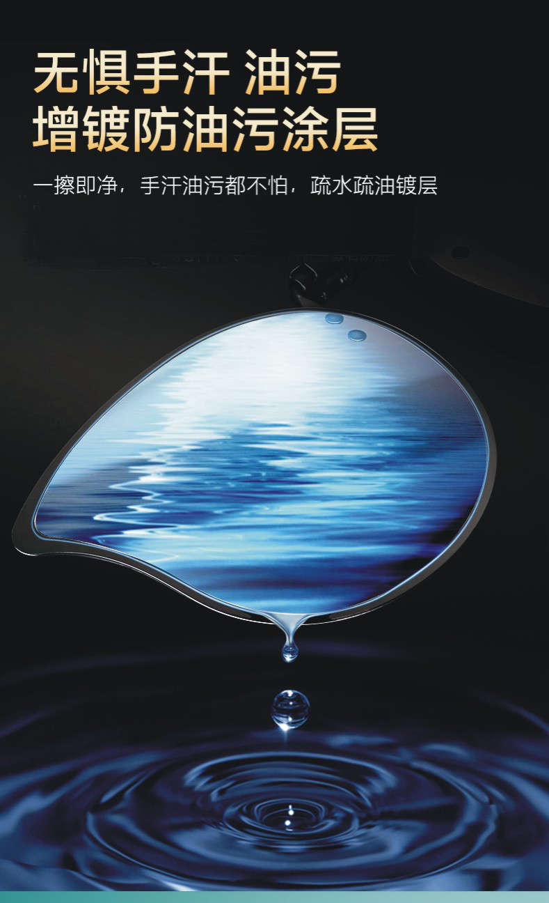 高清TAC偏光镜片,坚实耐用,能阻挡眩光、防紫外线,外层是増镀防油污涂层,无惧手汗、油污,一擦即净。