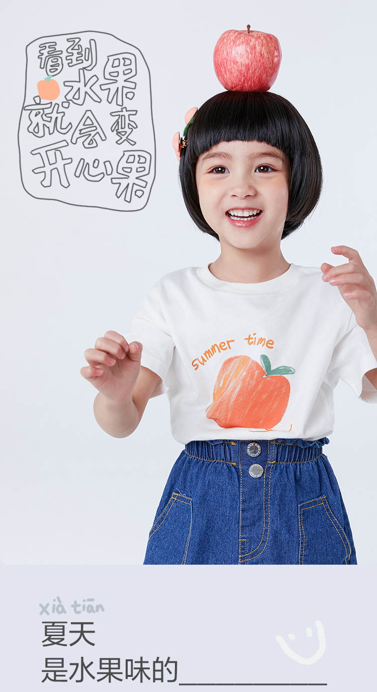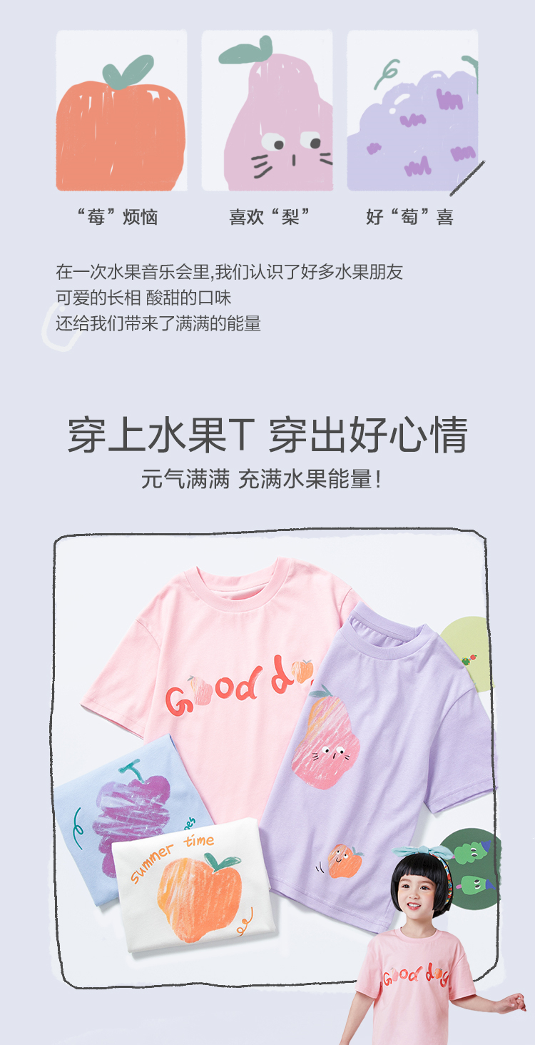 纯棉水果T,平衡热湿,宝宝肌自在身呼吸。