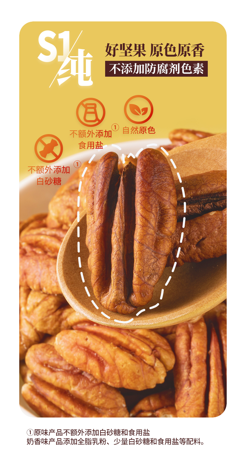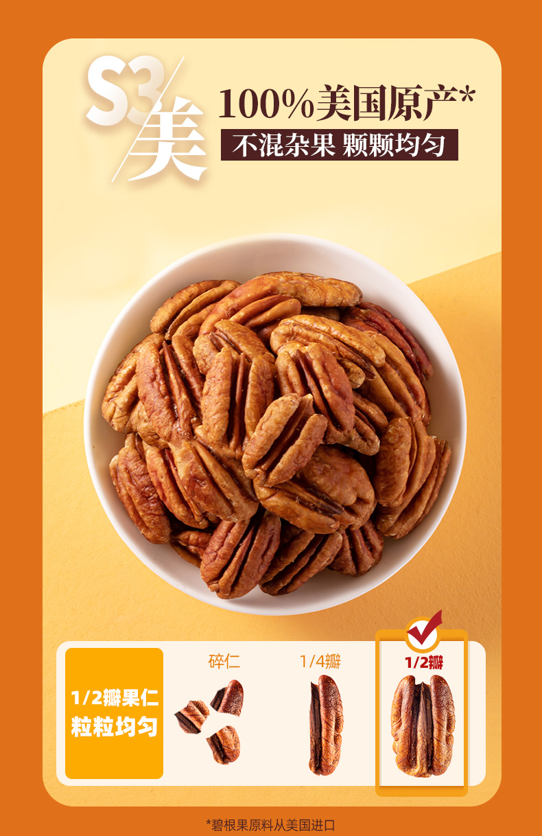 这款碧根果仁,出口级五星品质,100%美国原产大颗粒碧根果仁制成,品相饱满,富含高膳食纤维,营养丰富,轻烘慢烤,咸香酥脆,没有多余的添加剂,,贴心去壳,自然原色,专业锁鲜包装,随时随地尽享美味。