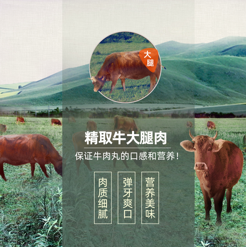 喜得佳 正宗潮汕 手打实心牛肉/牛筋丸,获得了香港Q唛认证,品质安全有保证。选用自然放养黄牛的新鲜后腿肉,纯手工捶打成酱,肉质细腻鲜嫩,Q弹多汁,爽口弹牙,能当乒乓球打,弹性非常之好(跟电影《食神》中的爆浆撒尿牛丸相似),不含硼砂、弹力素、防腐剂,口感筋道,爽口又弹牙。