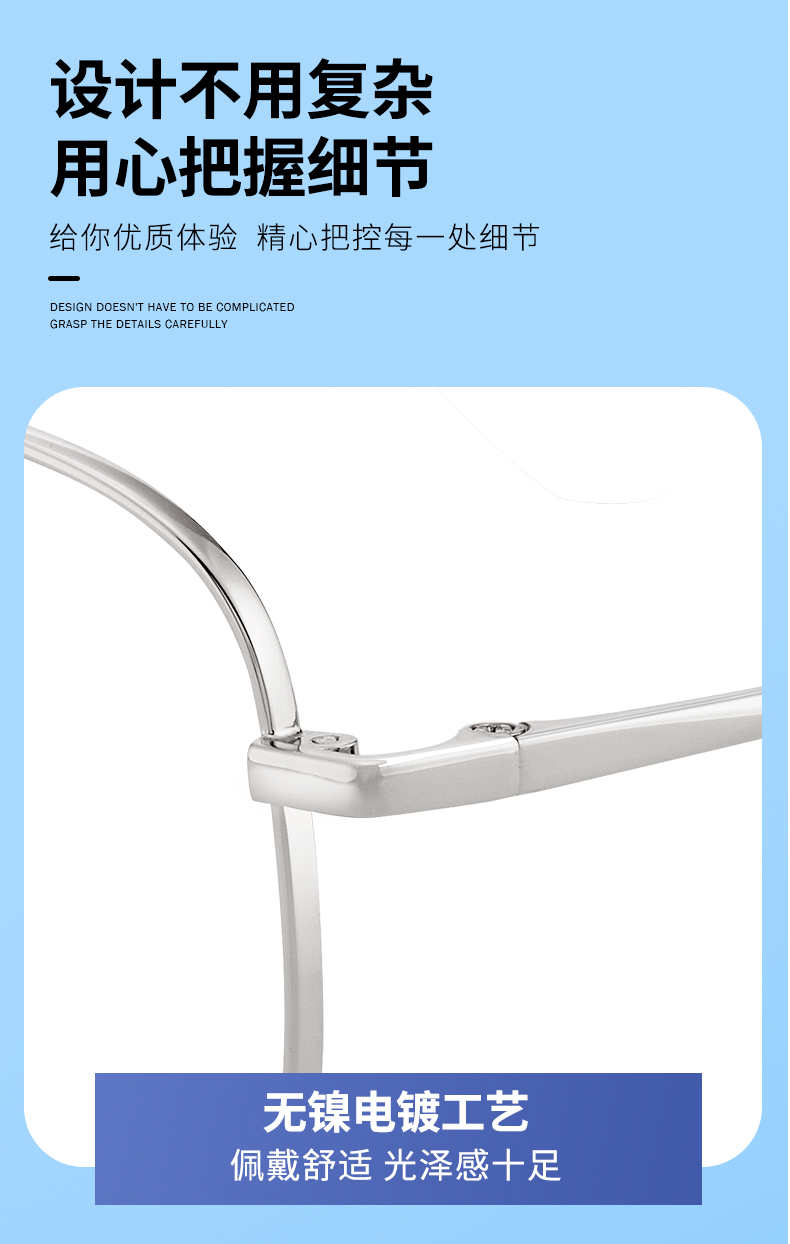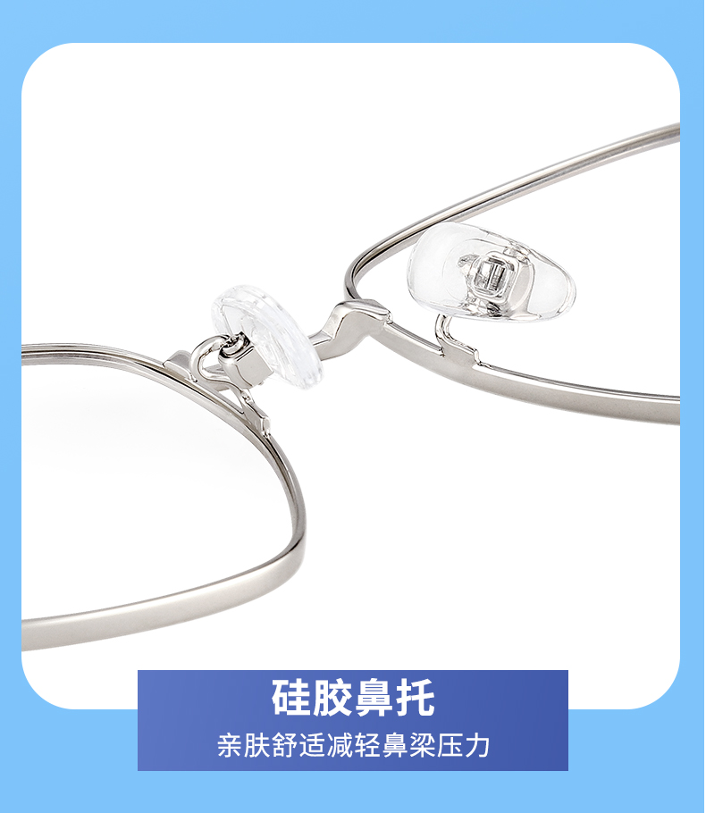 镜架有7°向内倾角,改变镜架在鼻梁上的重心点,防止眼镜框下滑。 弯折连接处开合自如不夹脸,双层软硅鼻托,减压无红印、支撑力度强。