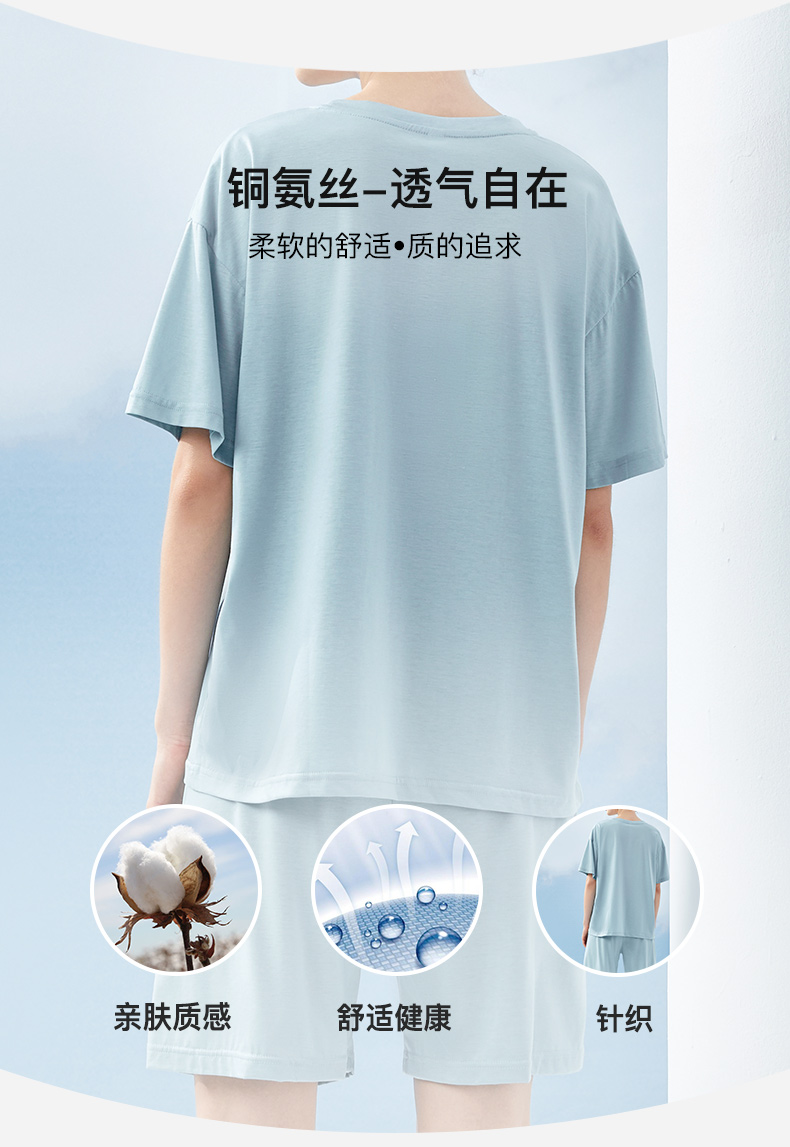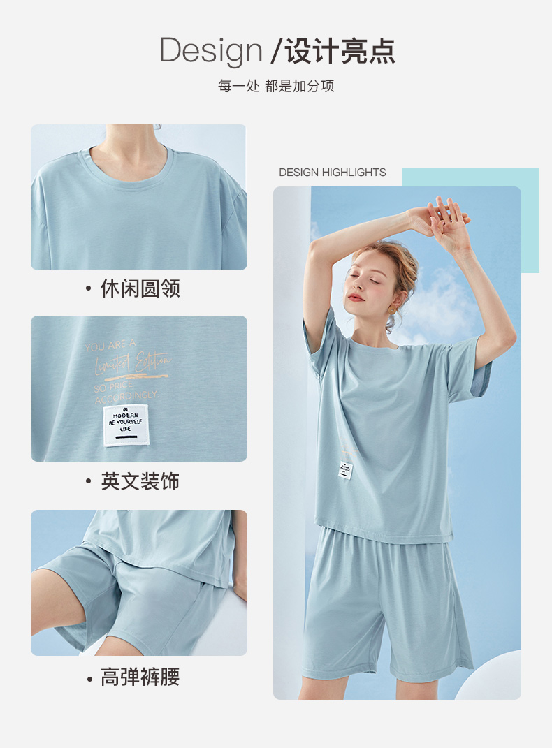这款玛伦萨 2022年夏季新款铜氨丝短袖家居服套装,铜氨丝面料,柔软舒适,透气自在;时尚大方圆领设计,休闲舒适,便捷穿搭;落肩型的短袖设计,休闲百搭,运动气息十足,个性刺绣,英文字母,趣味深入人心;裤腰内置松紧丈根,高弹不紧勒。
