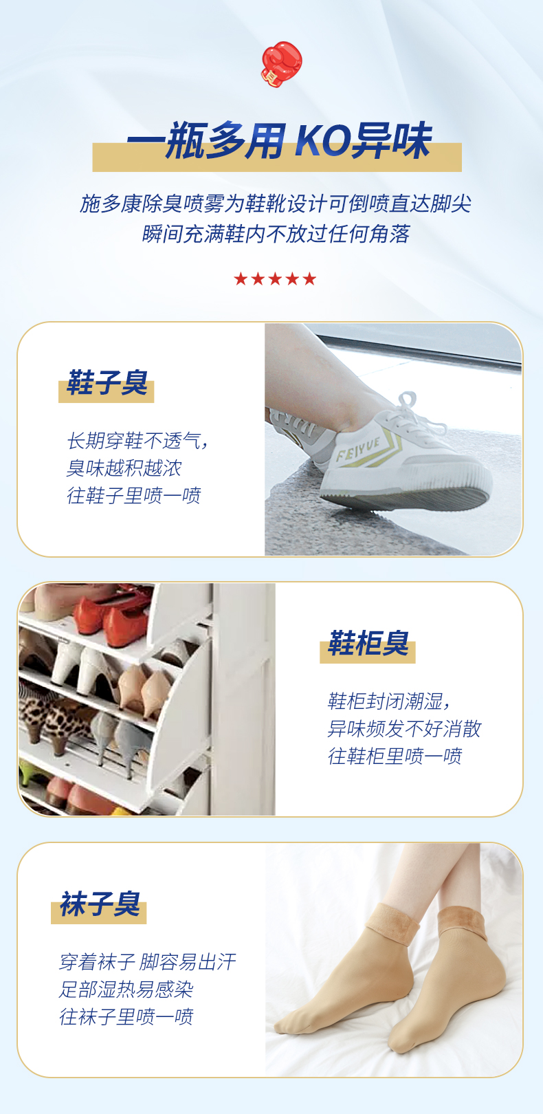 天猫施多康旗舰店39元,可领10元优惠券,实付29元到手,第一款这个价格;日本银离子抑菌除臭喷雾。臭黑科技,清爽速干,KO湿热。日本施多康除臭喷雾,蕴含银离子成分,轻轻一喷,1秒除鞋臭,持久抑菌,还是贴心倒喷设计,喷雾直达脚尖,运动鞋、板鞋等都能用。