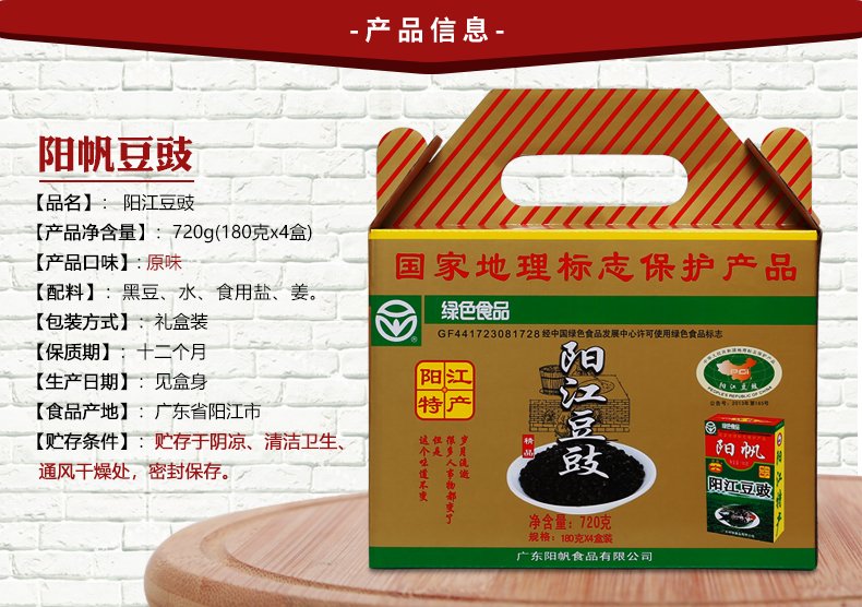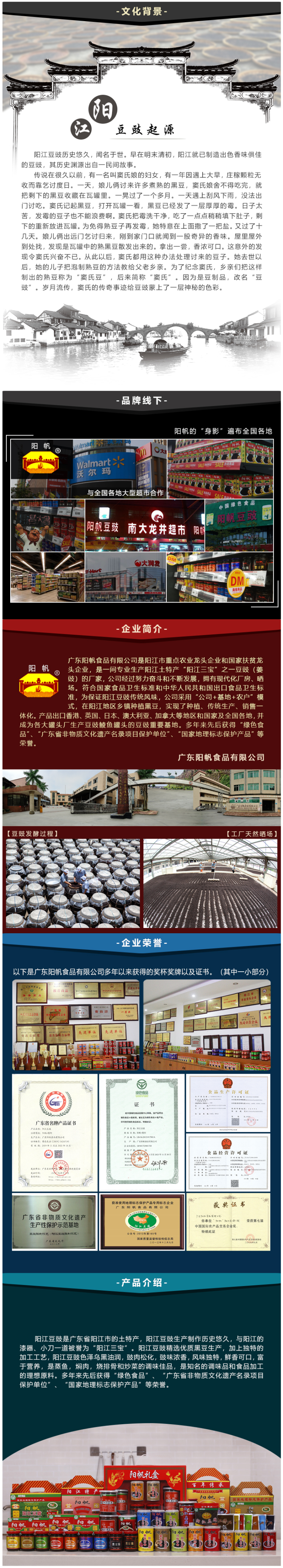 广东阳帆食品有限公司是阳江市重点农业企业和国家扶贫企业,是一间专业生产阳江著名土特产“阳江三宝”之一豆豉(姜豉)的厂家。