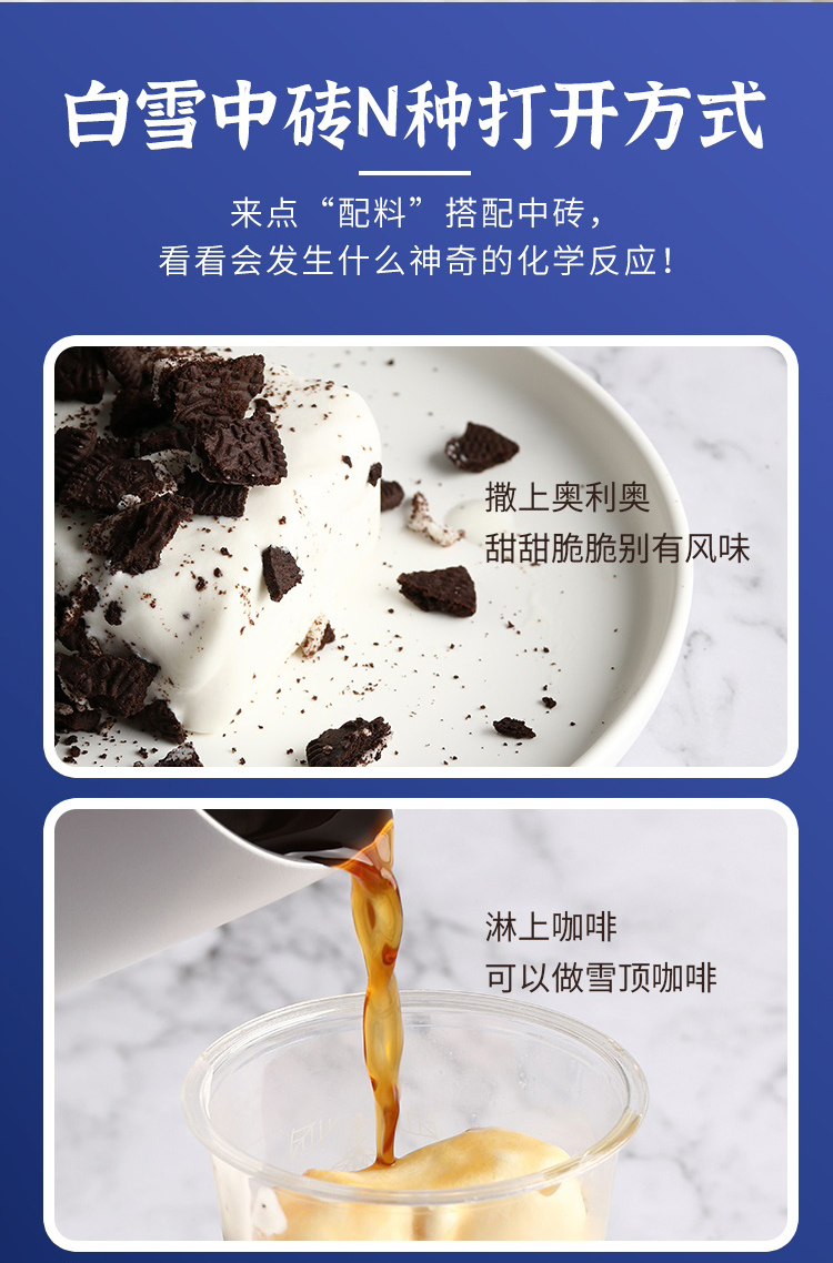 光明超经典的一款冰淇淋,包装简单,内含一大块香草奶油冰淇淋,虽然叫冰砖,但口感松软,入口即化,香浓牛奶味,清甜不腻,轻松解决一盒。