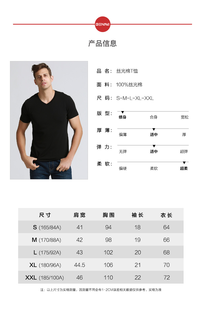 本米招牌款双丝光T恤,以千元级国际大牌标准制造,神价格。以埃及长绒棉为原料,纺成50支双股纱线,经过双丝光工艺处理,面料带有丝绸的光泽感和垂坠感,上身凉爽,体感降低3度,同时保有纯棉的诸多优点。