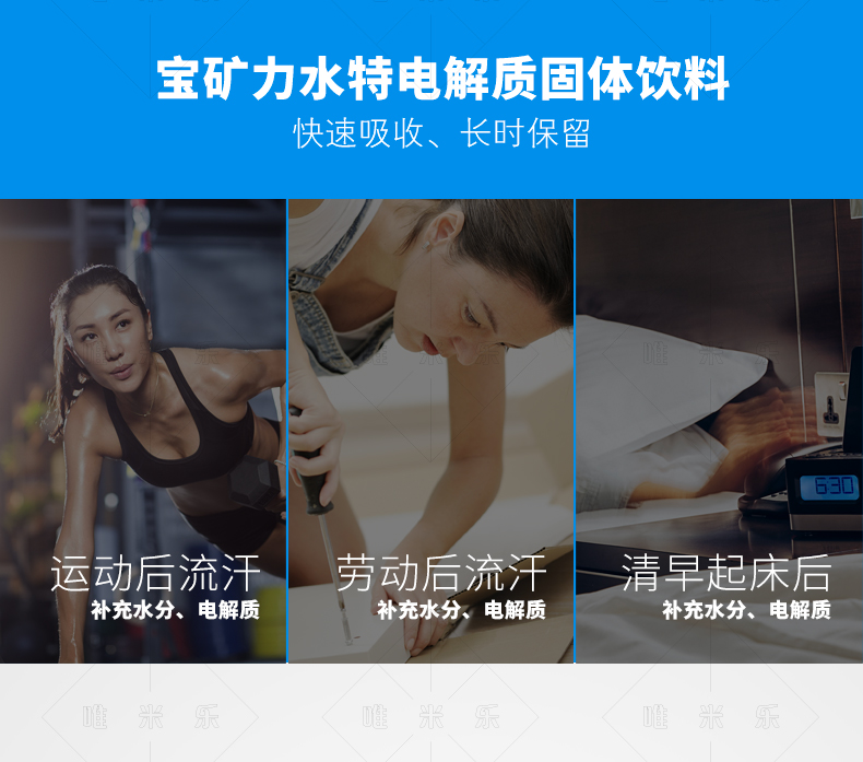 宝矿力水特可补充因大量运动体内迅速流失的电解质。人体在剧烈运动运动后会出现“体渴”的现象,而宝矿力水特对补充体内迅速流失的钠钾等微量元素有很好的效果。
