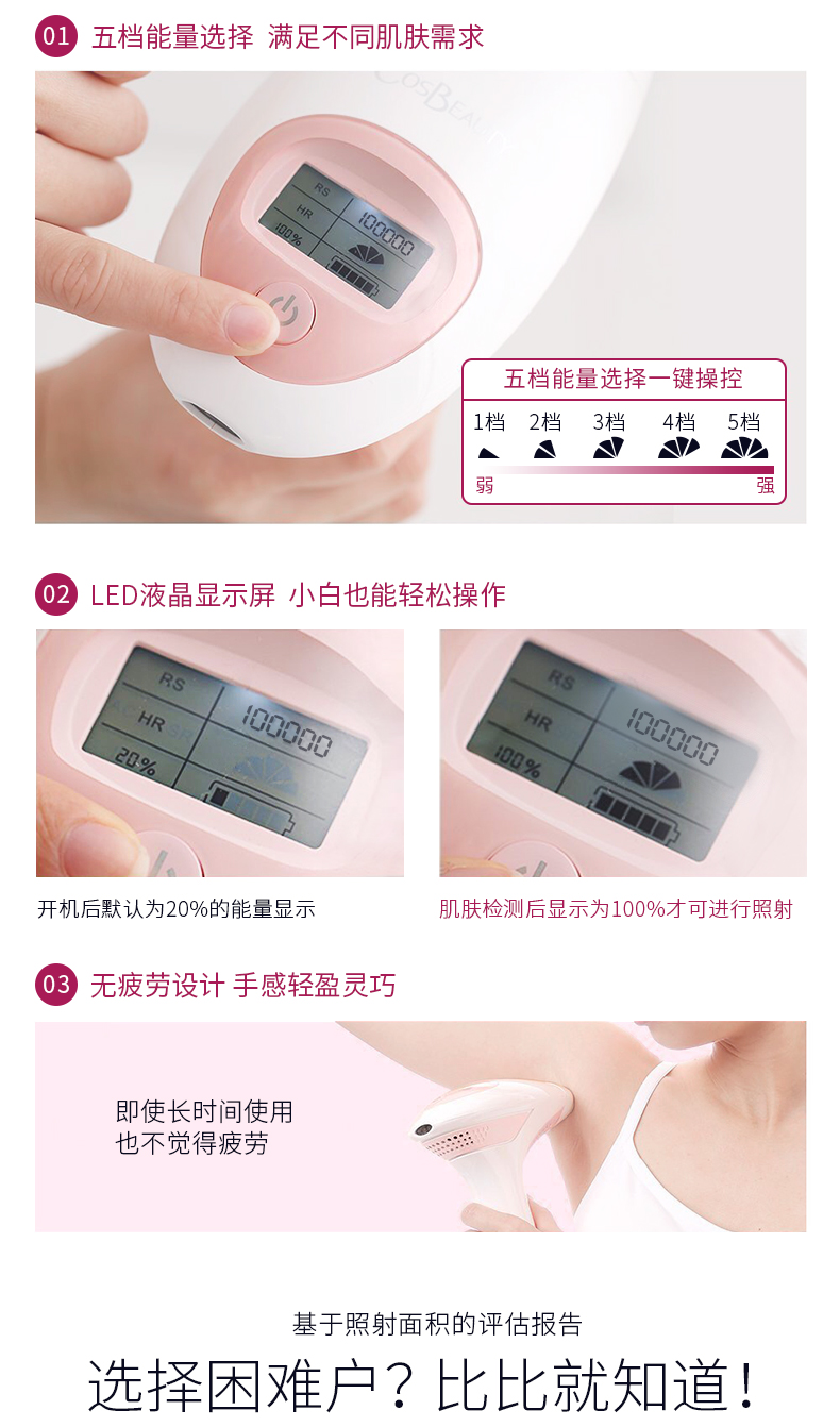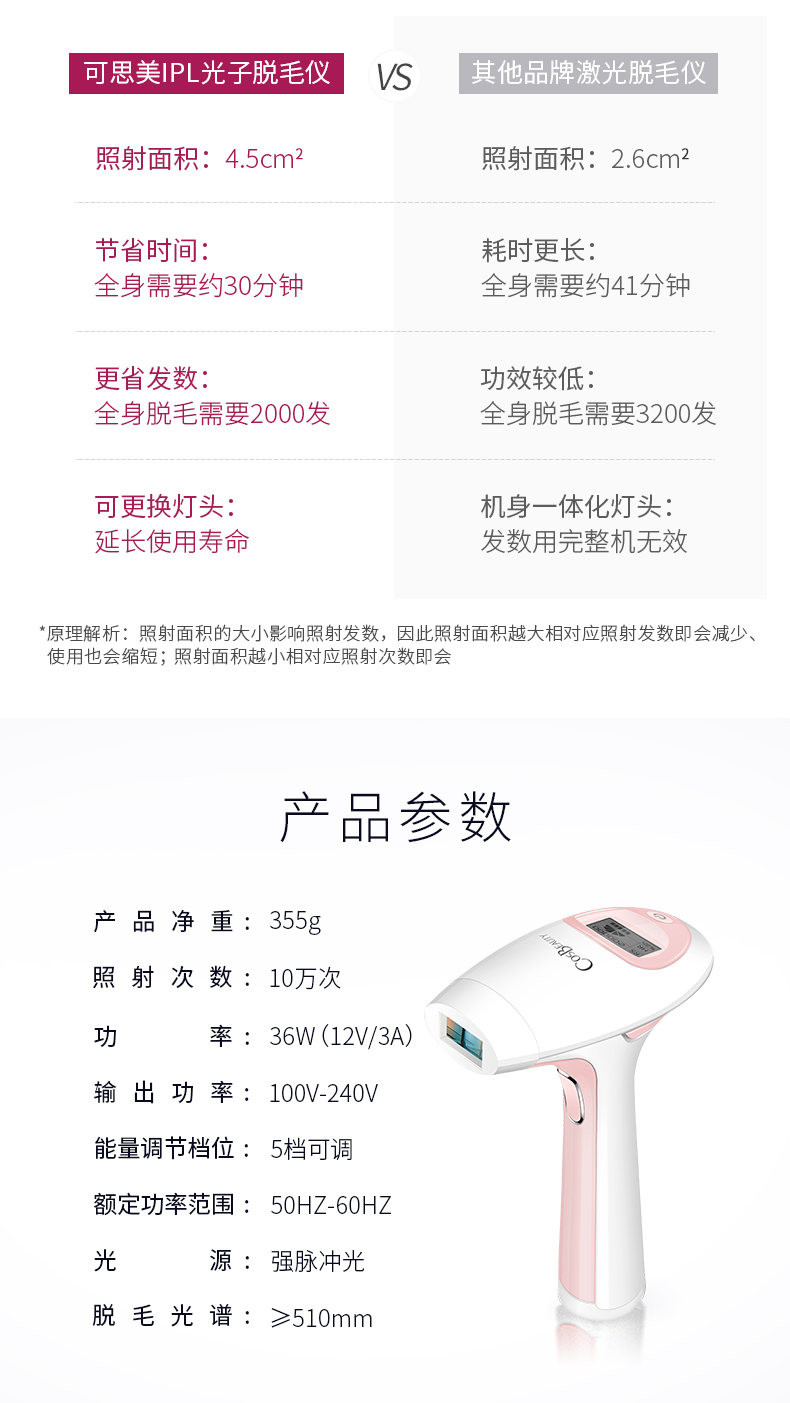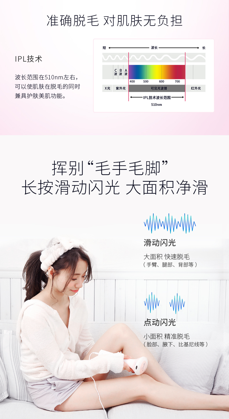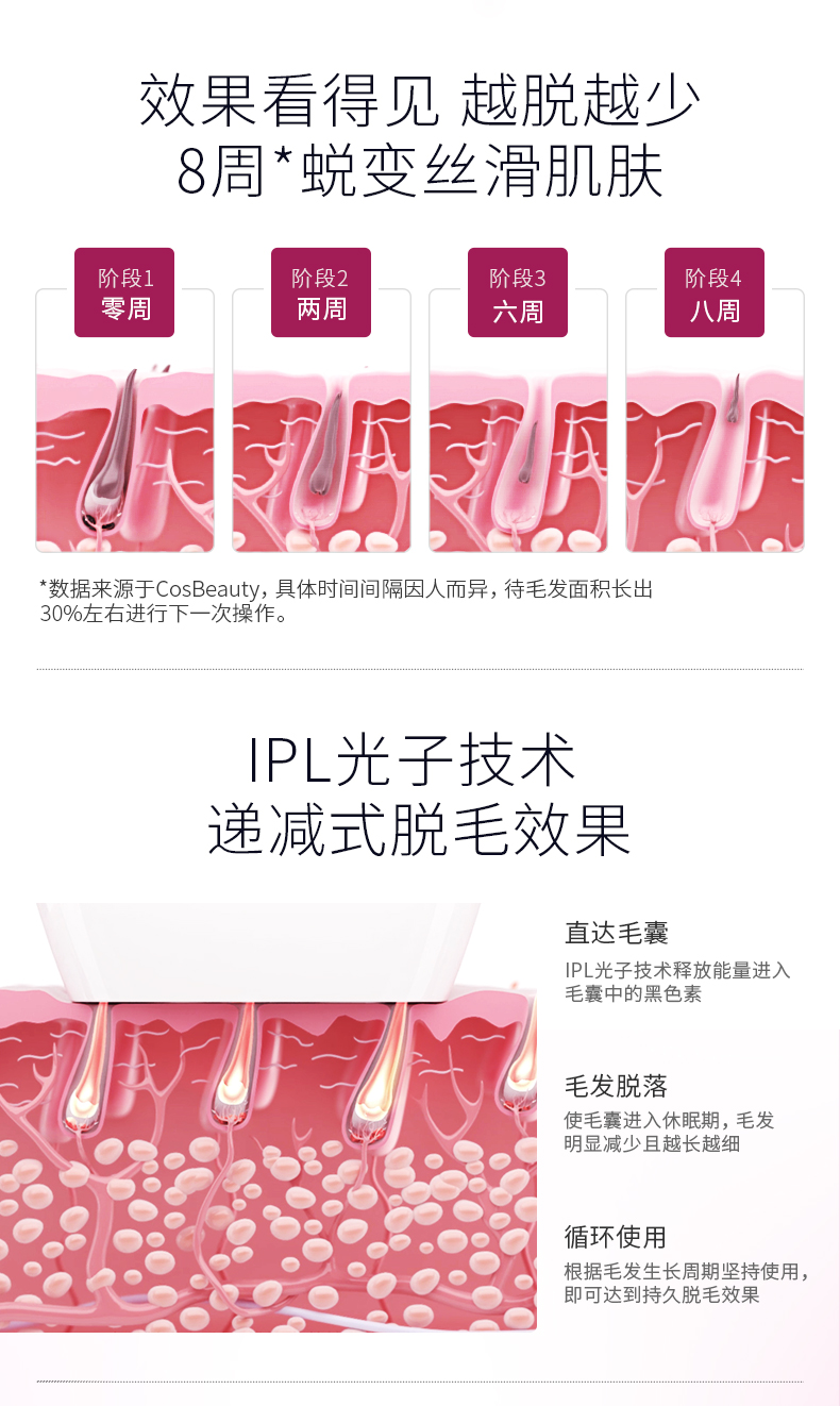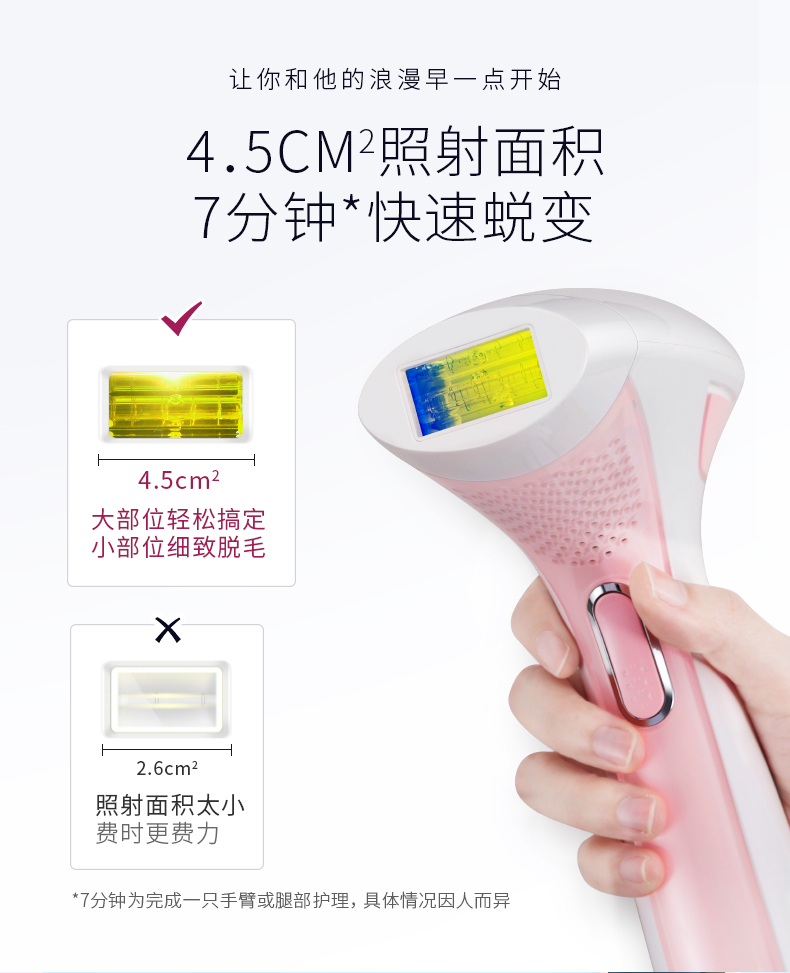 日本乐天销量冠军,8周光滑皮肤,美国FDA认证达到医疗器械的安全级别,全身(包括比基尼私密部位)可用。去美容院脱毛没个几千下不来。