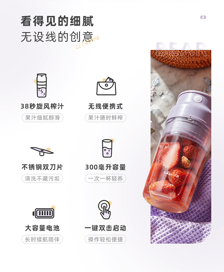 天猫小熊生活电器旗舰店109.9元,下单立减30元,可领30元优惠券,实付49.9元到手。这款Bear 小熊 便携式榨汁杯,容量300mL,食品接触级AS材质,304不锈钢隐藏式双刀片,双击按键启动,永磁直流电机,空转时速19000转/分,40W额定功率,环保节能,38秒旋风榨汁,无线便携更方便,1300mAh电池,满电可连榨12~15杯。