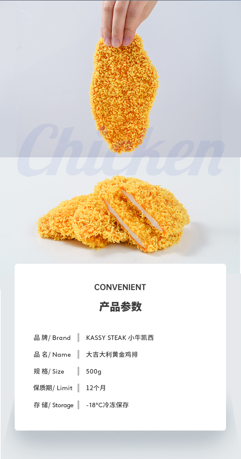 这款大吉大利黄金系列鸡排,使用优质白羽鸡肉,谷饲喂养,科学养殖,鲜嫩美味,专业机构检测,权威认证,食用更安心。无需解冻直接热油下锅,炸制3分钟表面金黄捞出即可。