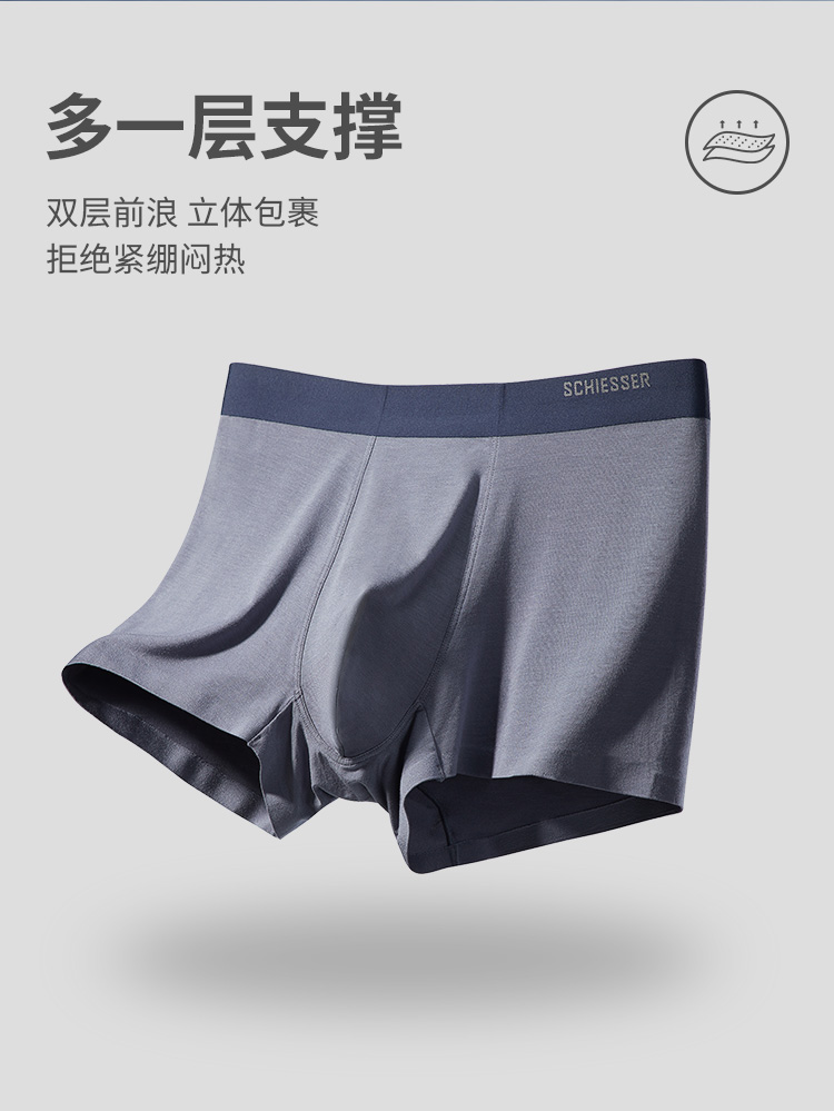 这款德国SCHIESSER 舒雅 男士50S兰精莫代尔平角内裤,采用兰精莫代尔材质,触感顺滑,光泽垂坠,柔软透气,带来无侧缝的舒适感;加入氨纶,弹而不绷,24小时干爽透气;双层前浪,立体包裹,拒绝闷热;臀部一片式设计,无侧缝舒适无感;隐形腰头,触感丝滑,贴而不勒,无感印唛,杜绝刺痒。