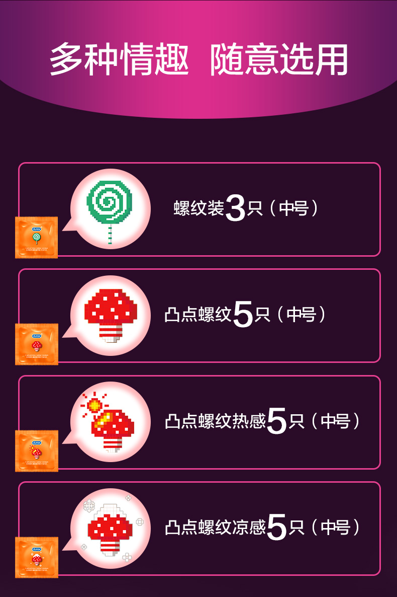 天猫durex杜蕾斯官方旗舰店79.9元,可领30元优惠券,实付49.9元到手;第2款此价,凸点+螺纹颗粒 双重刺激,还有热感与凉感的双重体验,为爱增添情趣,包含螺纹3只,凸点螺纹5只、凸点螺纹热感 5只、凸点螺纹凉感5只,抽拉盒装取用方便。