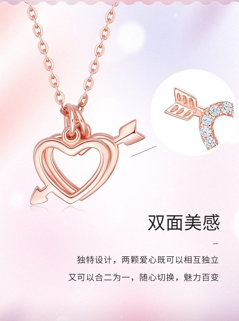 天猫周大生饰品旗舰店329元,可领180元优惠券,实付149元到手。520好礼,丘比特一箭倾心,S925镶砖双心套链,双面美感,独特设计,两颗爱心既可以相互独立,又可以合二为一,随心切换,魅力百变。