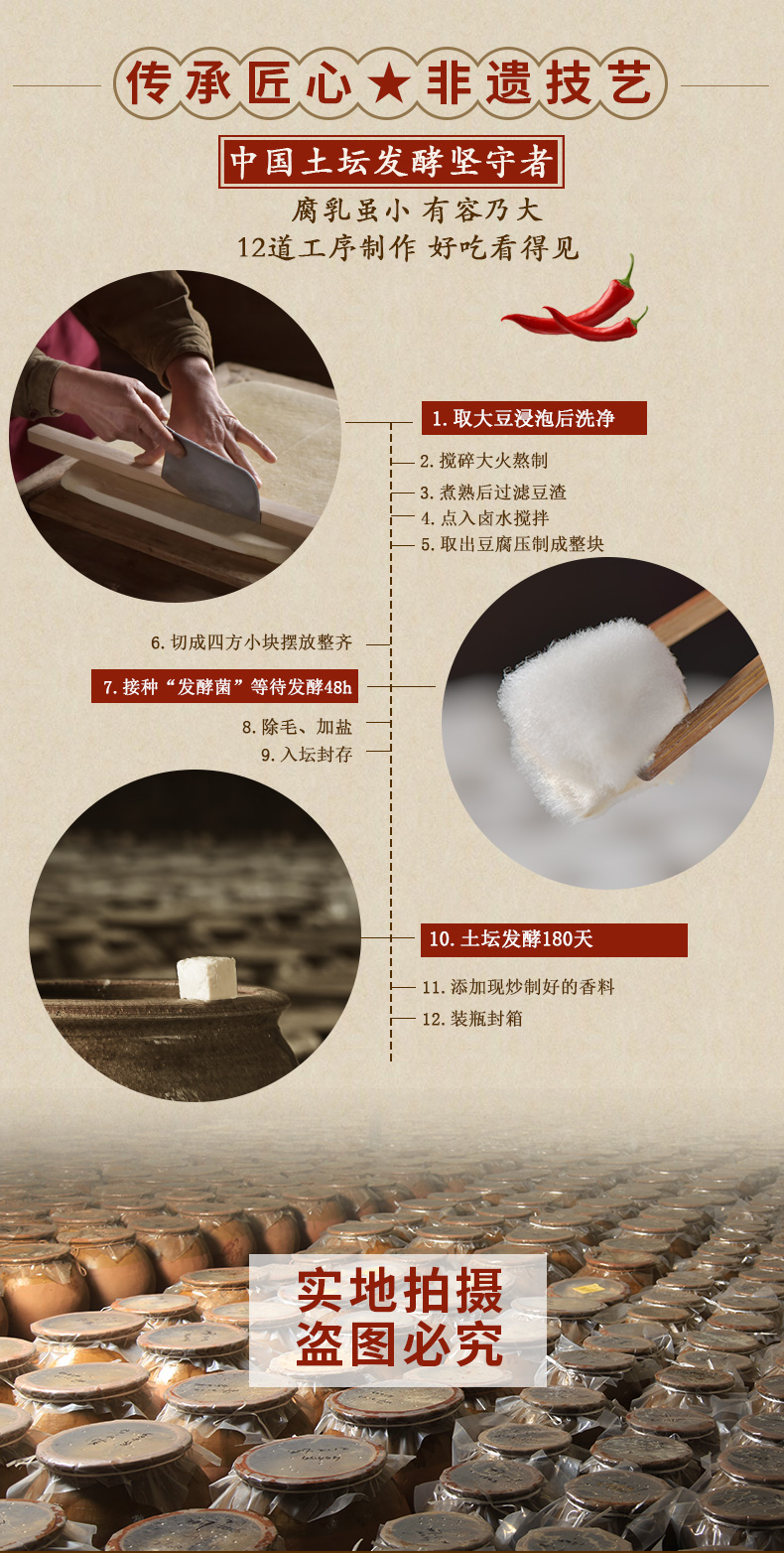 夹江腐乳始于1861年,民国25年被评为四川土特产,1986年,国营夹江腐乳品牌正式成立。2014年夹江腐乳被列为了非物质文化遗产。夹江腐乳店,坚持古法手作,每一块腐乳都经过了半年以上的发酵,滋味醇厚。