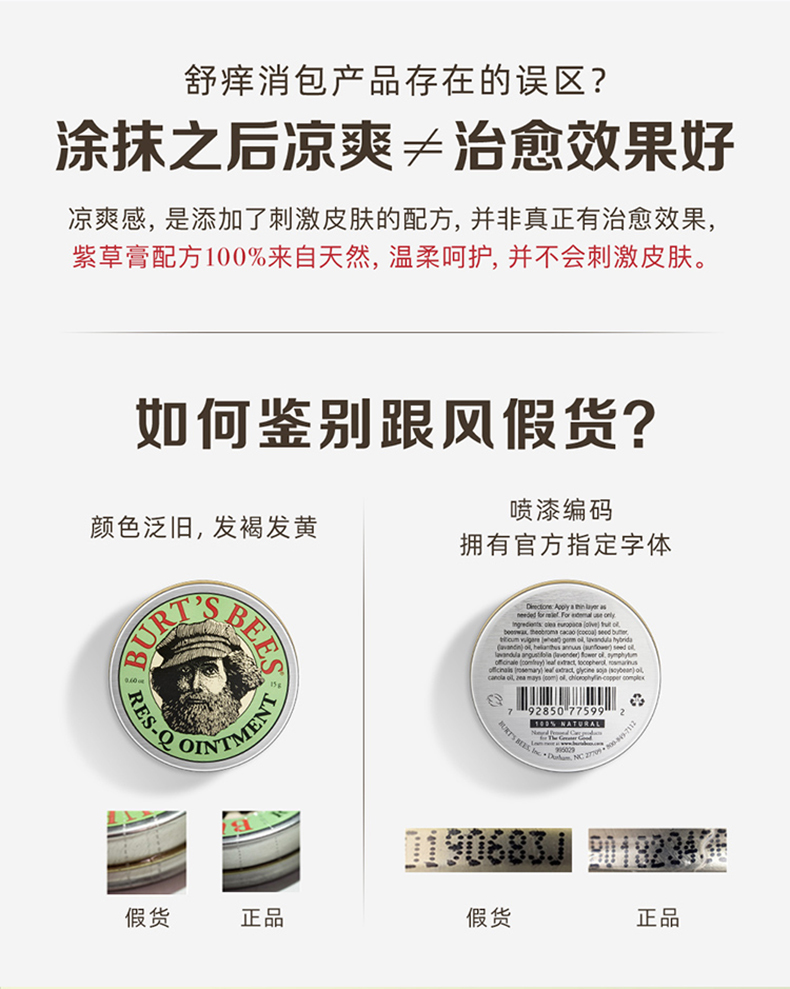 这款伯特小蜜蜂 紫草膏,在天猫止痒类目中累计销售额NO.1,美国进口,萃取天然植物精粹-紫草叶提取物、小麦胚芽油、薰衣草花油,无激素和其他添加,具有舒痒消包、舒缓肿痛、舒心提神的的功效,味道也很好闻。