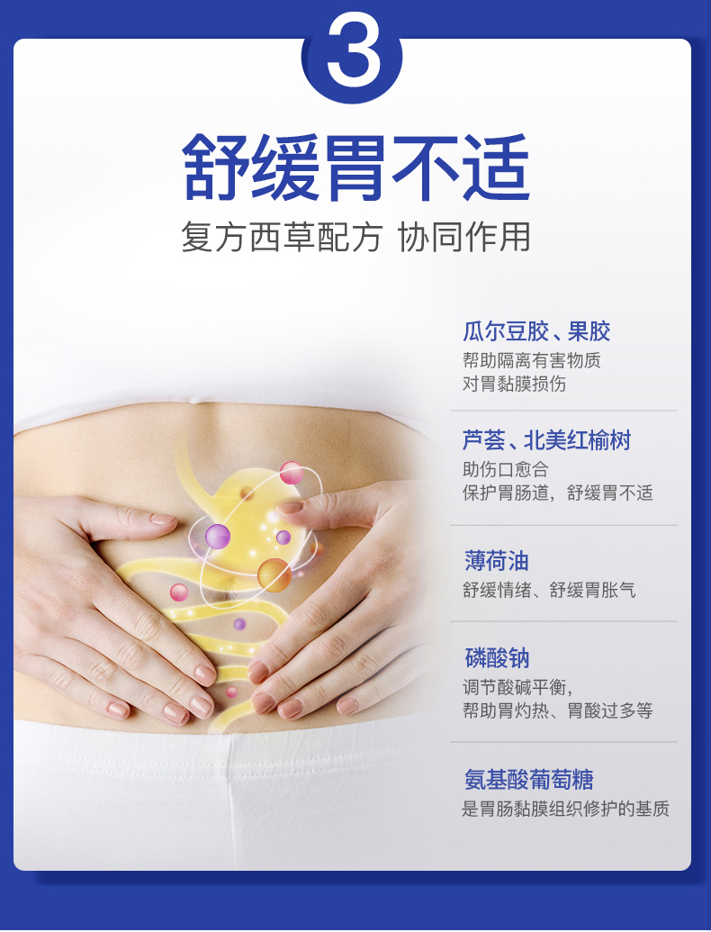 能有效缓解肠胃不适、调理肠胃健康、保护肠胃不受感染。适用于慢性胃炎、肠炎,便秘腹泻,腹胀腹痛等。含姜黄、谷氨酰胺,能帮助抑制幽门螺杆菌酶,帮助修复肠胃粘膜,功效比一般产品要好。