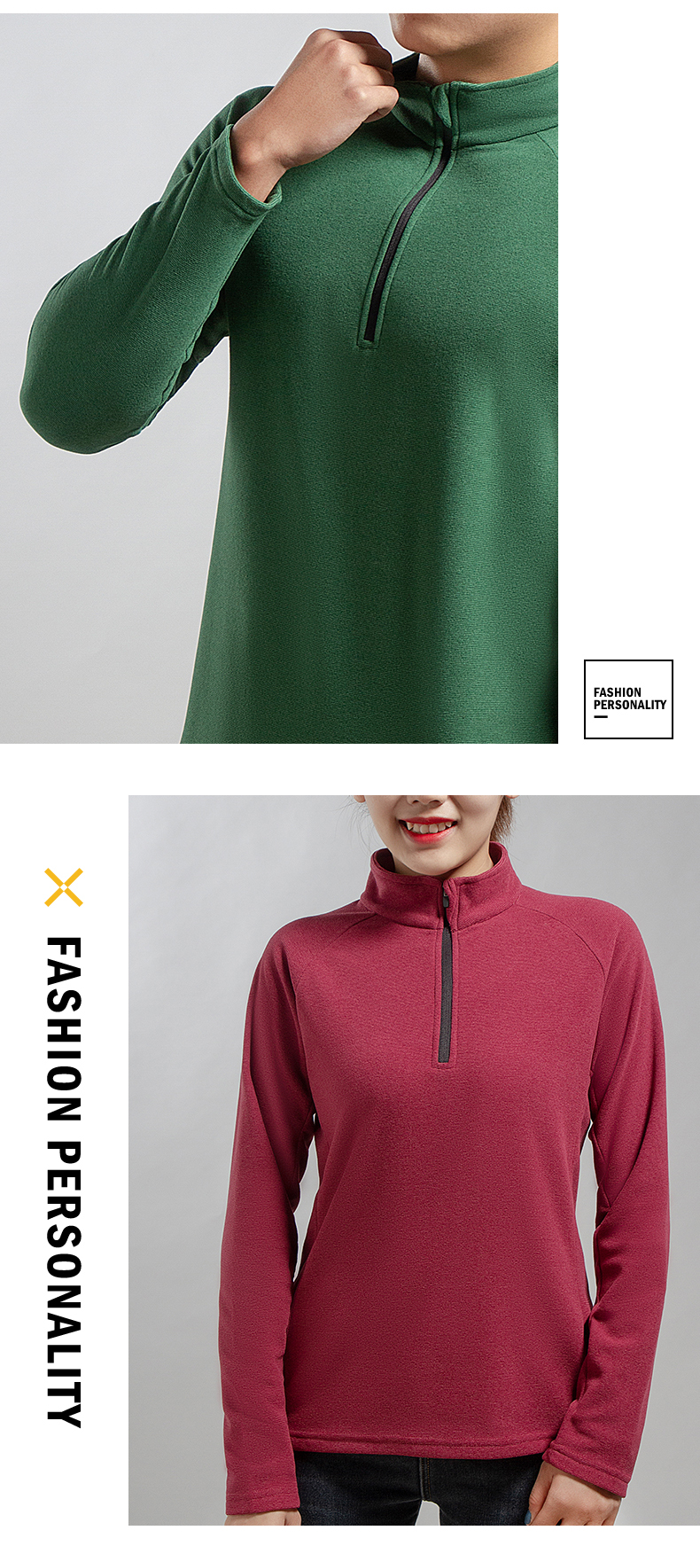 在款式和细节上,男女均修身版型,半开禁拉链立领设计,拉链顶端有护颚设计,不会刮伤脖颈。外层是纹理质感面料,避免了抓绒起球的问题。袖口和下摆采用双车线工艺,不易开线,无论是直接单穿或者作为中间保暖层都没问题。