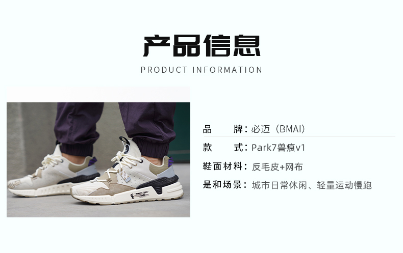 这款必迈Park7 兽痕v1是2020年的夏季款,主打复古风,鞋面使用多物料不规则拼接撞色,复古与潮流兼具,适合年轻人穿。