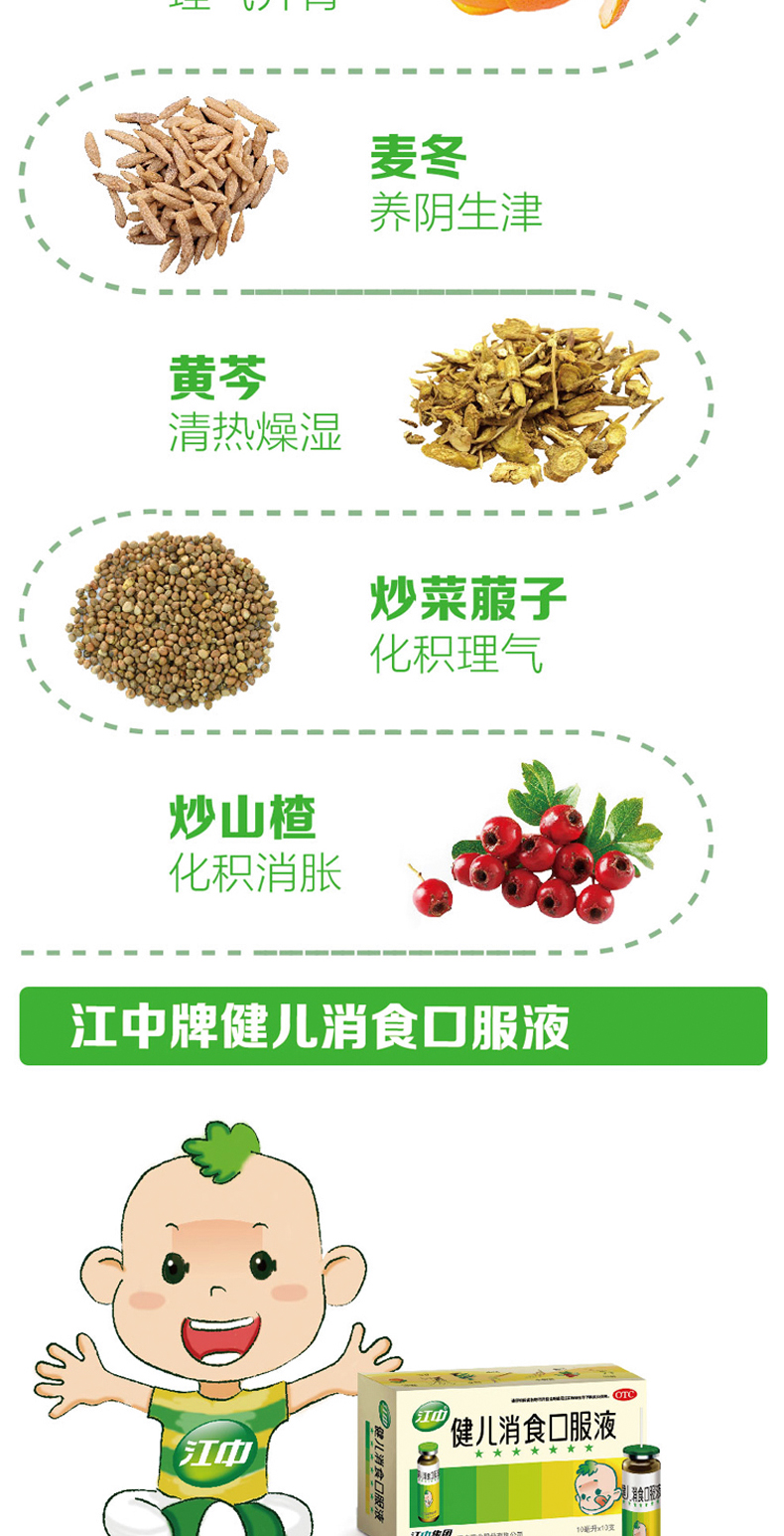 它的成分,主要是太子参、陈皮、山药、麦芽、山楂。它的药理作用,就是山楂和麦芽消食化积,主治消化不良,不思饮食等症;陈皮,行气导滞,具有运脾健胃之功效;太子参、淮山药,可健脾益气,补而不燥,主治脾胃虚弱,食少怠倦等。