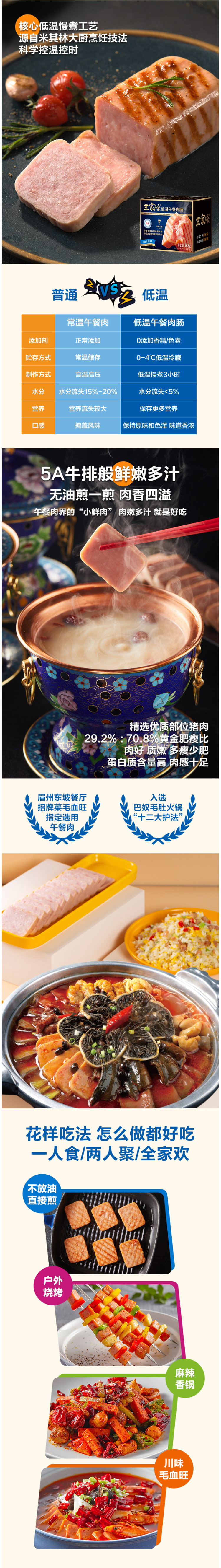 精选优质猪肉为材料,不添加任何防腐剂,色素,香精,没有混便宜鸡胸肉、淀粉<3%,更具价值。肉质细嫩,口感Q弹,肉味十足;可搭配火锅,麻辣烫,或油煎,制作三明治;也可搭配米饭,面条等一起食用。