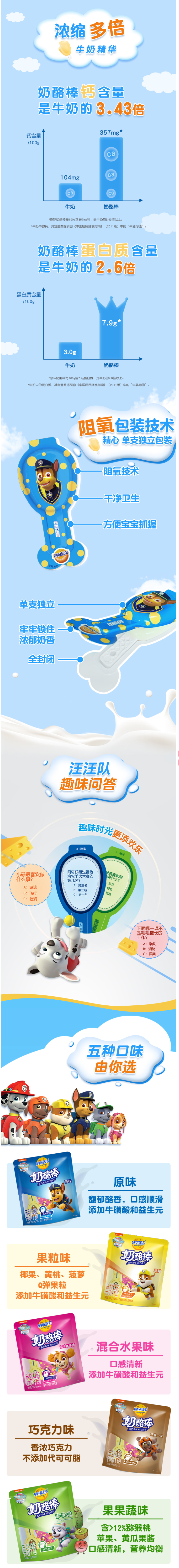 这款奶酪棒获得了汪汪队立大功的正版授权,包装可爱又童趣,选用优质奶源制作,高钙配方,专为儿童设计研发,口味香醇浓郁,采用先进的阻氧技术,锁住浓郁奶香,提升柔和口感,独立小包装,1次1根,食用方便。
