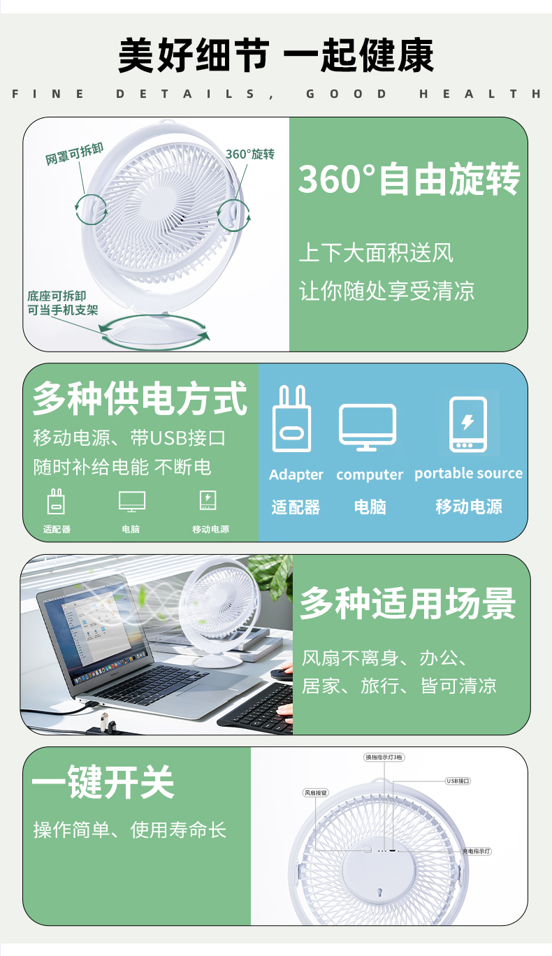 天猫洪剑旗舰店0元,可领5元优惠券,实付9.9元到手,usb直充款此价,此外还有无线充电电池款可选,略有差价。柔风低噪,360度旋转,放办公室,家里书桌,床头等都可,相伴随行消暑凉~
