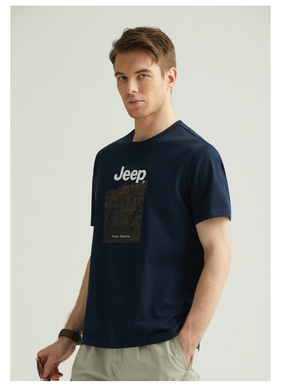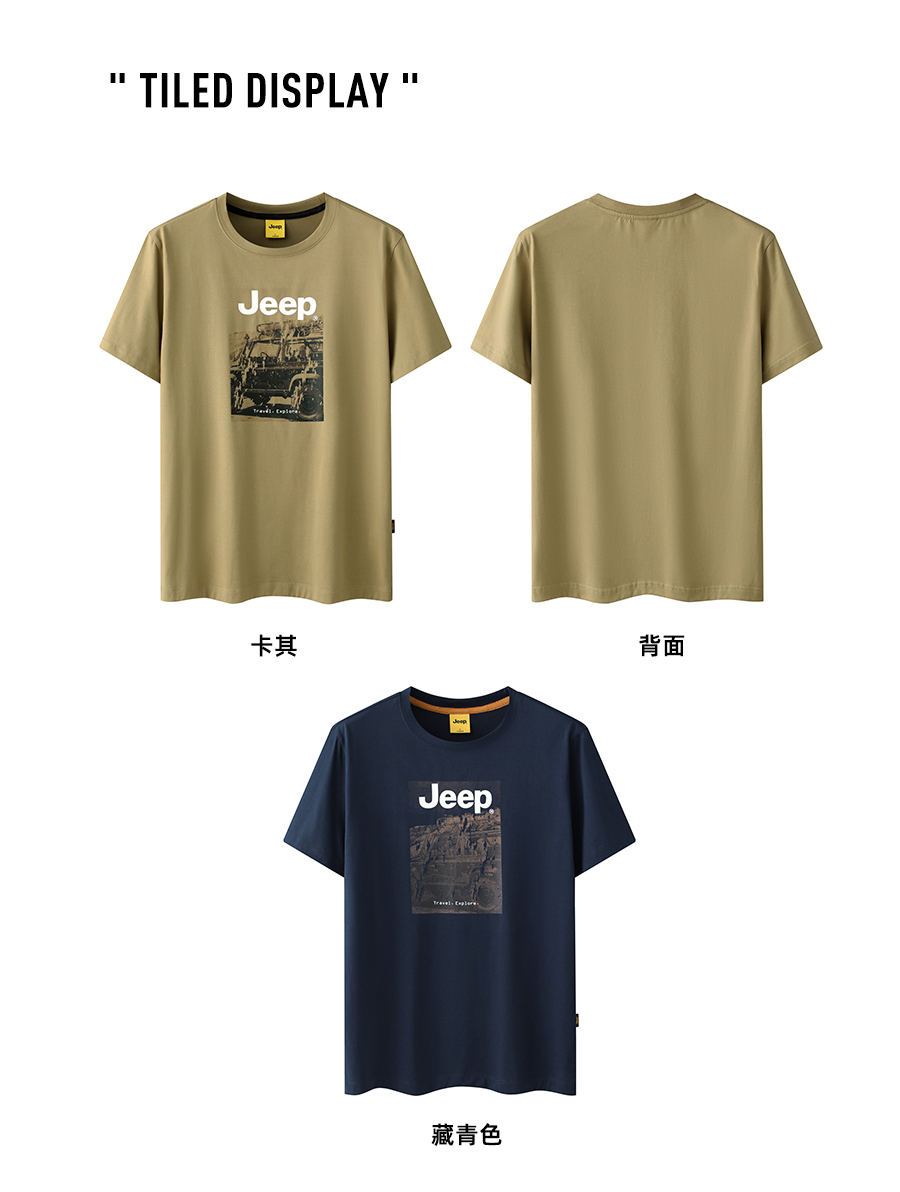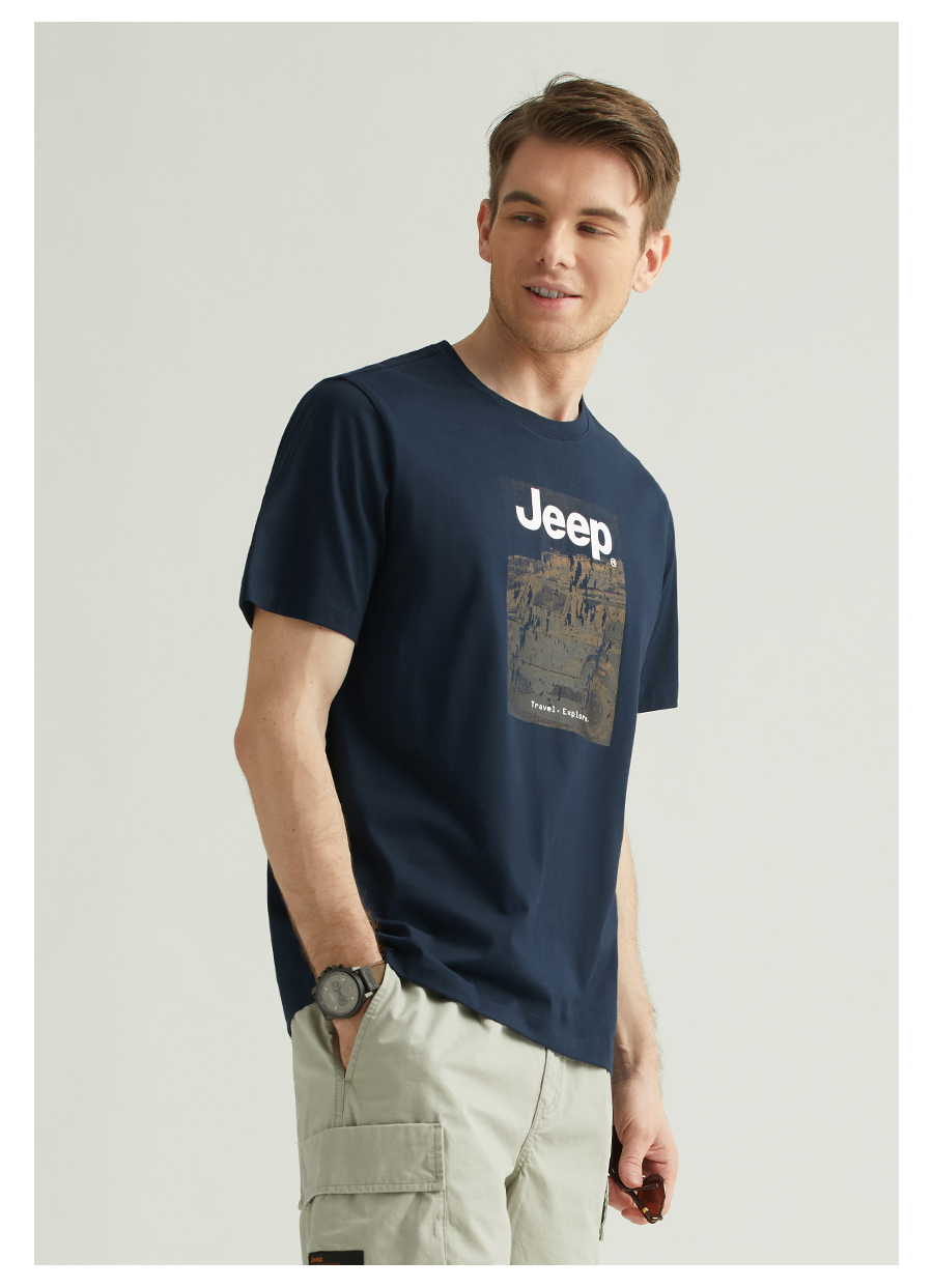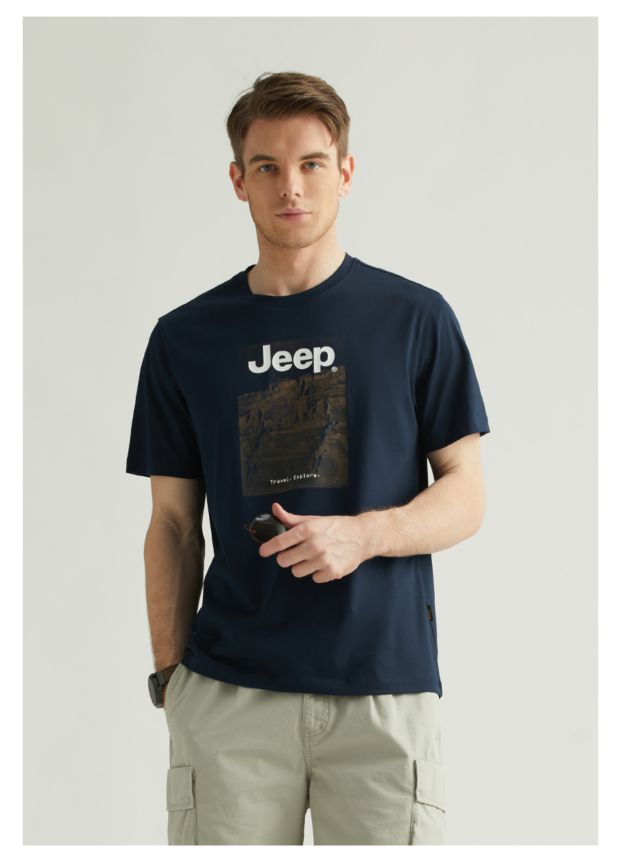 这款吉普Jeep男纯棉休闲印花T恤,是2022年夏季新款,使用100%纯棉面料,柔软亲肤,吸湿吸汗,厚度上也偏薄,夏季穿更透气,同时还带弹性,上身更舒服。