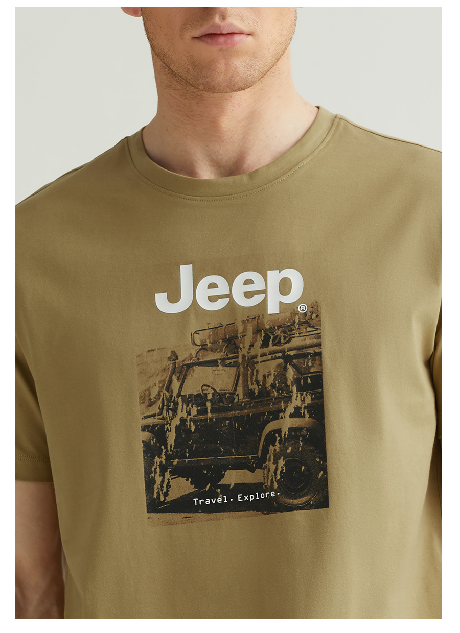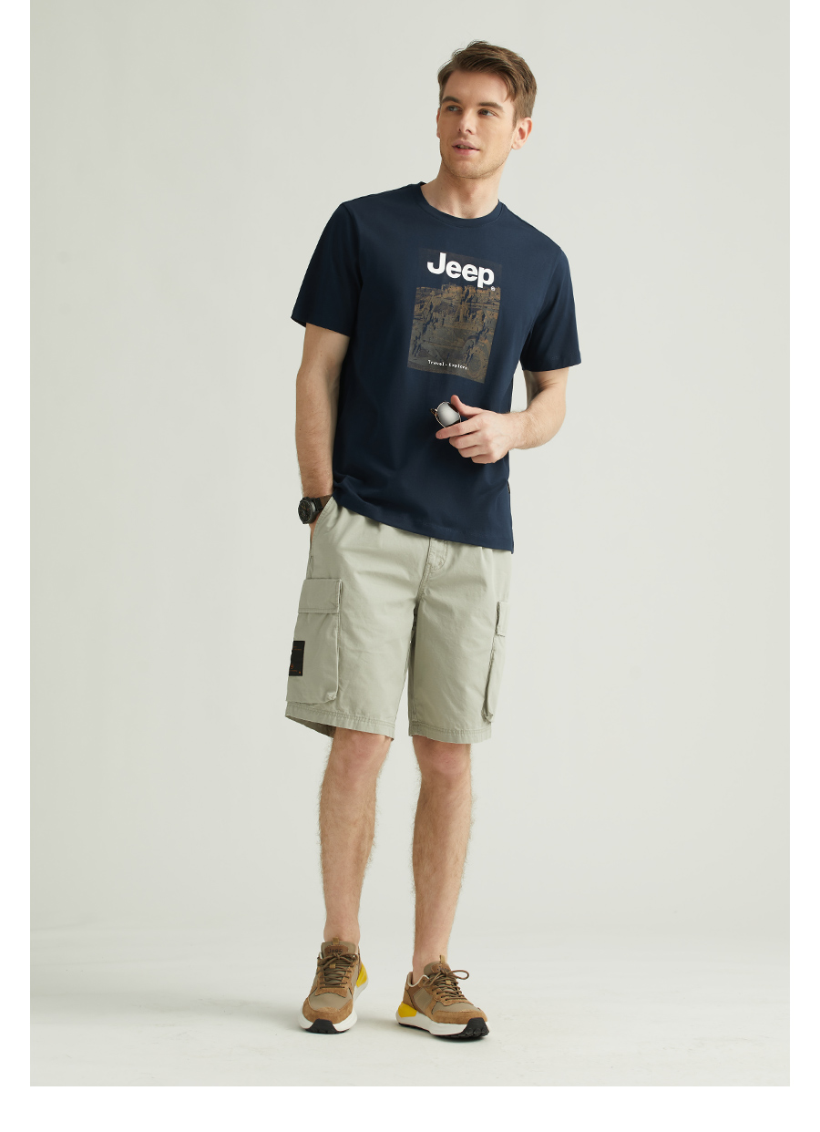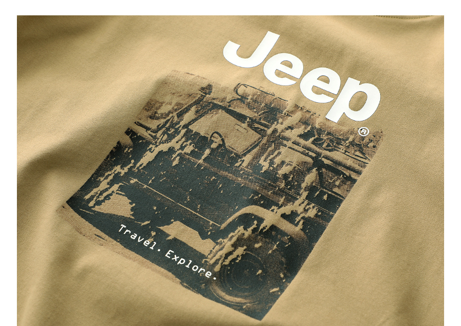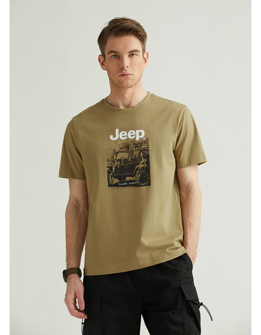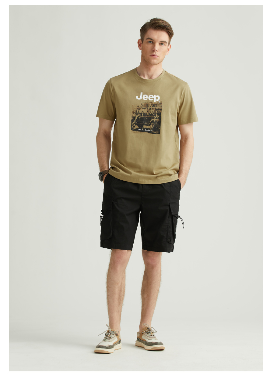 这款吉普Jeep男纯棉休闲印花T恤,是2022年夏季新款,使用100%纯棉面料,柔软亲肤,吸湿吸汗,厚度上也偏薄,夏季穿更透气,同时还带弹性,上身更舒服。
