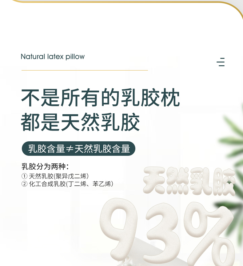 福满园18年老品牌,线下累计400+门店,销量口碑非常好的品牌,精选泰国尖竹汶府五叶黄金头层乳胶,乳胶含量93%以上,0合成乳胶、0丁苯橡胶、0滑石粉、0氢氧化铝,不含过敏成分和刺激性气味、成品不软塌,不变形,有助于改善睡眠困扰,舒缓颈椎不适,赠送亲肤枕套,睡眠体验更舒适,双层真空压缩发货,还带有礼袋包装,自用送人皆宜。