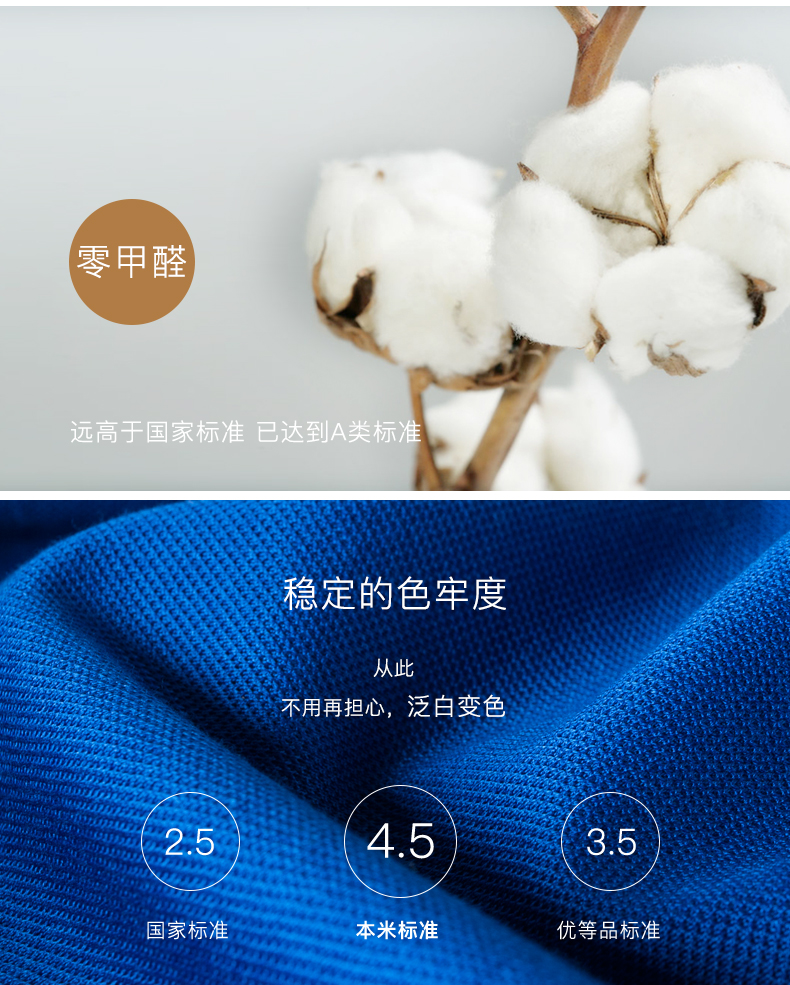 2、面料会选用长绒棉/皮马棉/丝光棉、科技速干等高端材质,织成带微弹力的珠地网眼面料,透气不沾身;