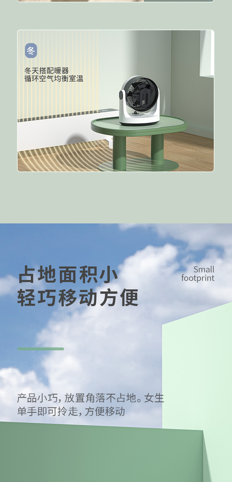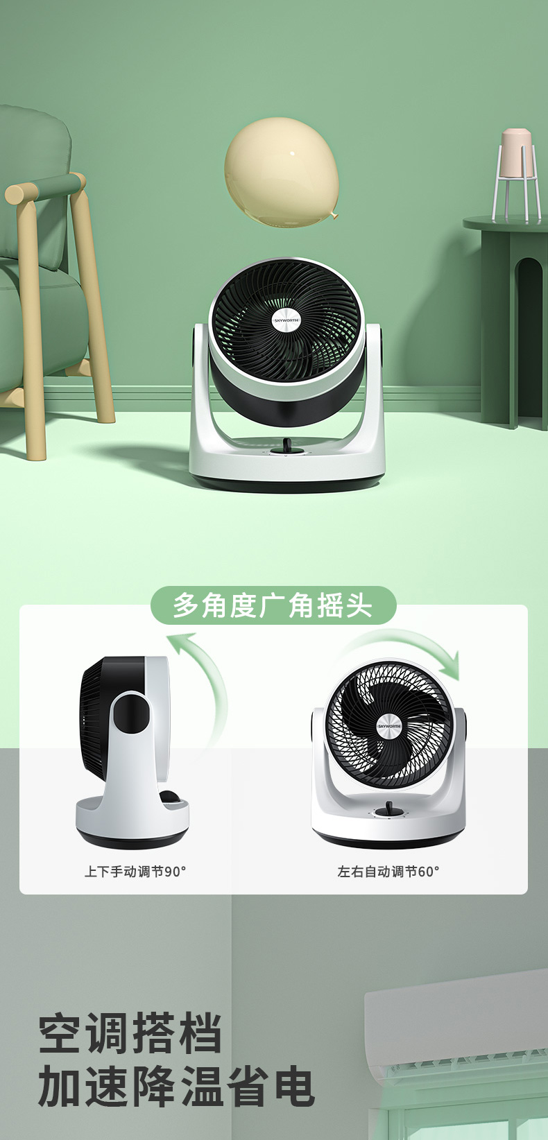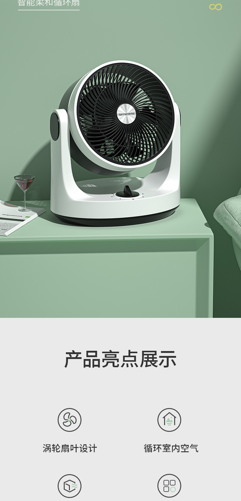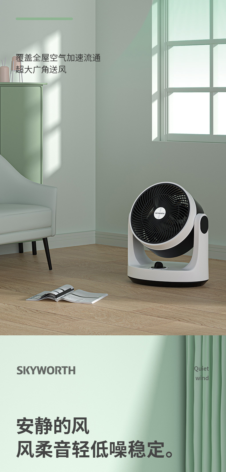空气循环扇能够迅速地聚集气流,将聚集的气流喷射出去,遇到障碍物后气流扩散,从而产生了空气循环气流。也就是说对着人吹是没有传统风扇的伤害的,特别适合宝宝、老人使用。家里装修之后,用空气循环扇来加速室内空气的流通,可达到加速散味的效果。
