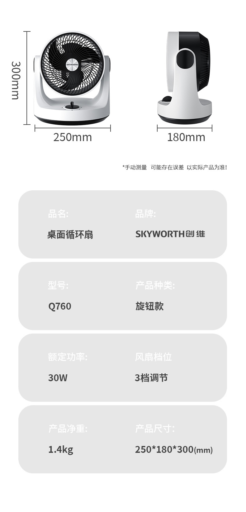 天猫创维汇尚专卖店99元,可领50元优惠券,实付49元到手,第一款机械款此价25*30cm、三档可调,左右自动摇头,上下手动调节,另有遥控款可选,略有差价。