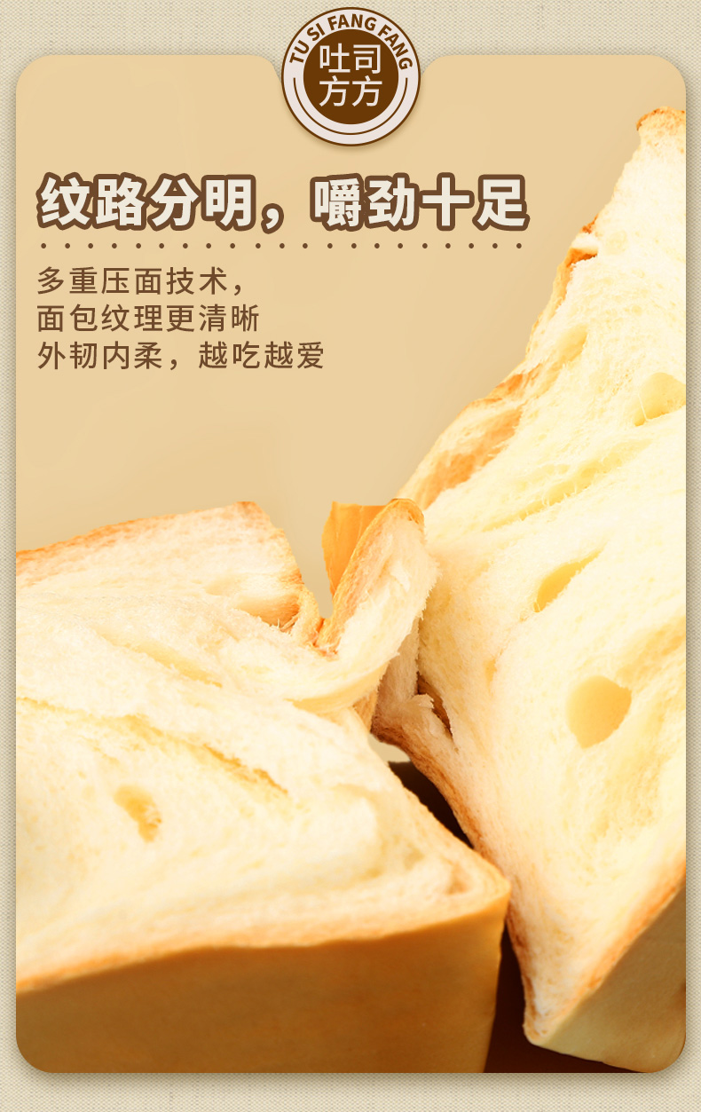 天猫三只松鼠旗舰店26.9元,可领9元优惠券,实付17.9元到手,甄选新西兰进口乳粉,品质小麦、优质鲜鸡蛋,纯牛奶和面,不加一滴水,多重压面技术,面包纹理清晰,外韧内柔,3cm厚切独立包装,一打开就能闻到蛋奶香完全不会腻,越吃越爱吃。