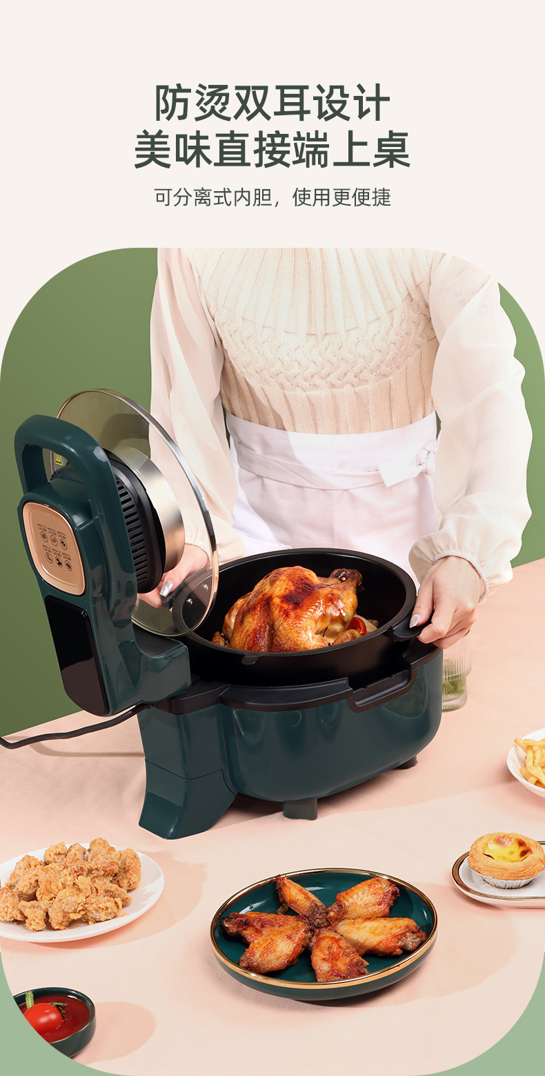 80-210℃广域调温,0-60分钟自由定时,4D热风循环,加热均匀拒绝烤焦烤糊,即可快速高温脱脂,同时也能锁住食材水分和营。