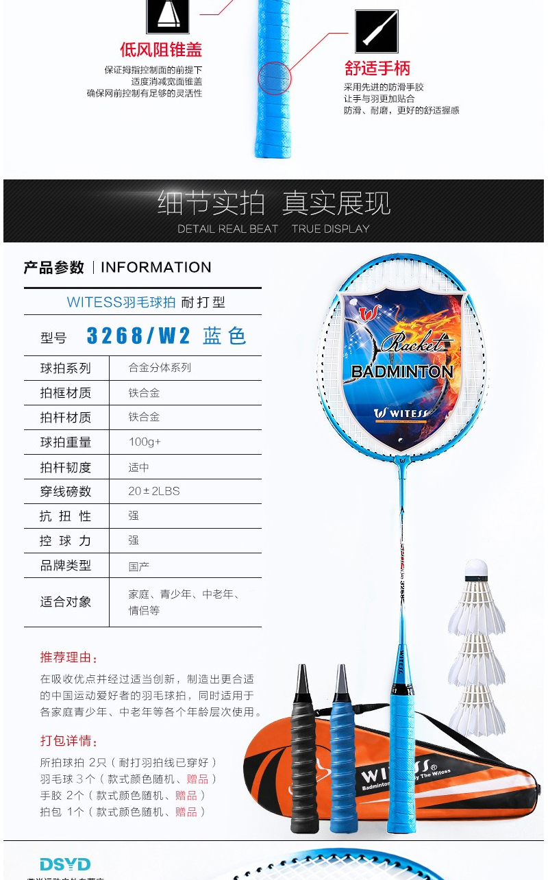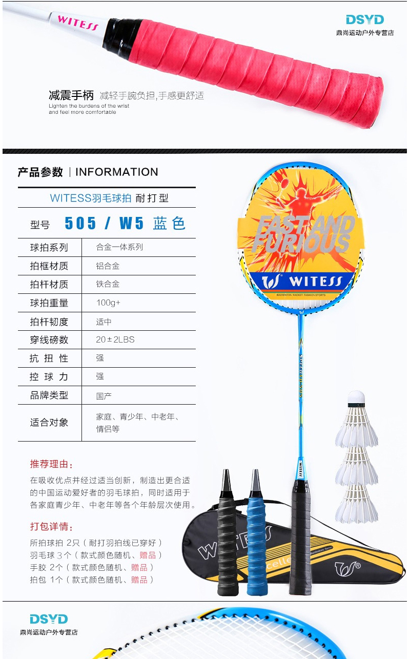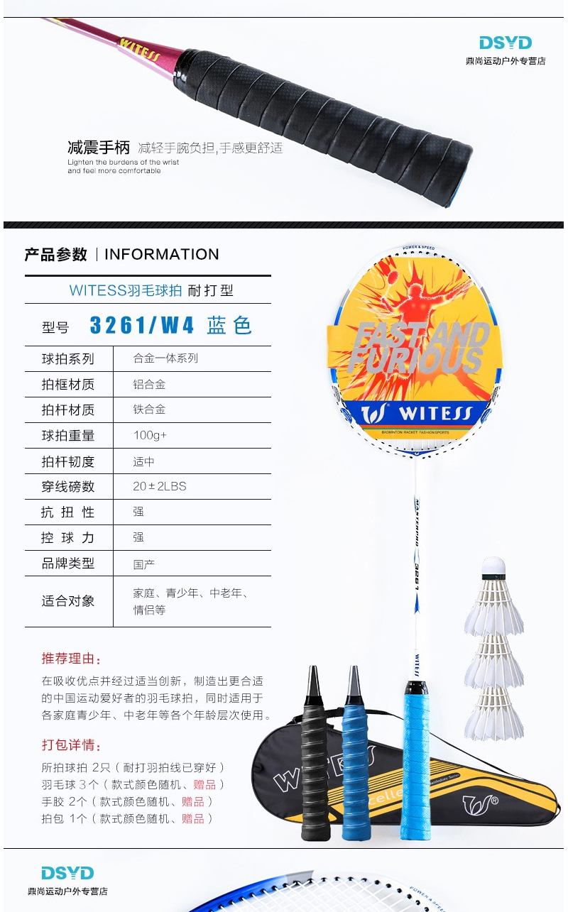 天猫鼎尚运动户外专营店35元,可领10元优惠券,实付25元到手,基于价格推荐。WITESS 进攻耐打型羽毛球拍,适合初学者使用,天气日渐凉爽,是户外运动的时间。