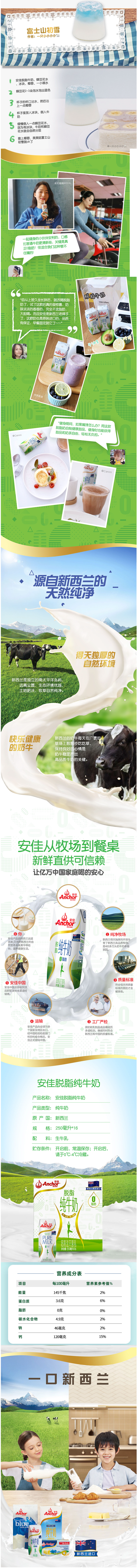 安佳脱脂牛奶,新西兰原装进口,蛋白质含量高达3.6g/100ml,每盒脱去67大卡,相当于跑步10分钟消耗的热量,脱脂不脱味,清甜好喝,非常适合有健身,减脂需求人群。超高温灭菌,历经多次检测,严格遵守新西兰和中国严苛质量标准,品质有保障。