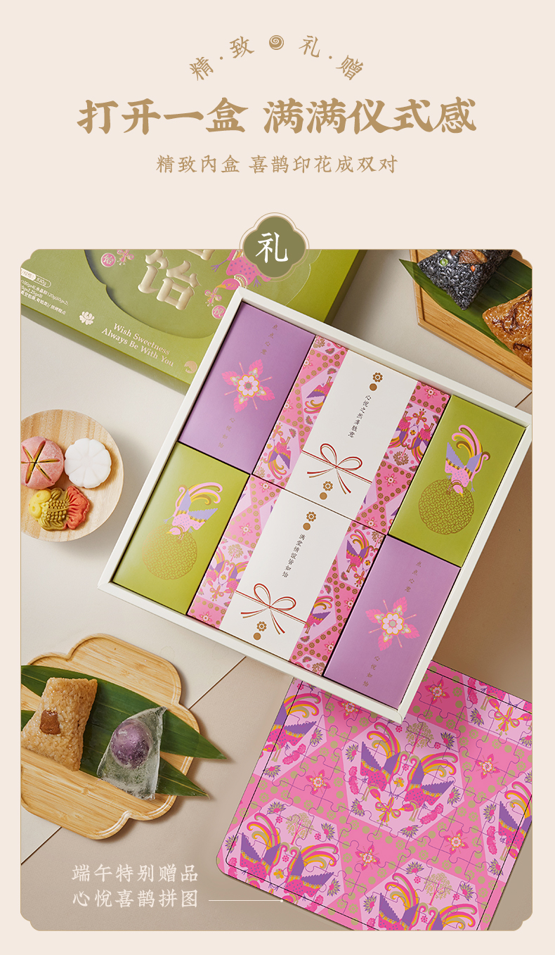 天猫唐饼家旗舰店128元,可领80元优惠券,实付48元到手。来自上海的名牌美食,线下近百家直营店。礼盒包含6枚江南一品粽+10枚东方雅集甜点+端午特别赠品:心悦喜鹊拼图,非常适合送礼。