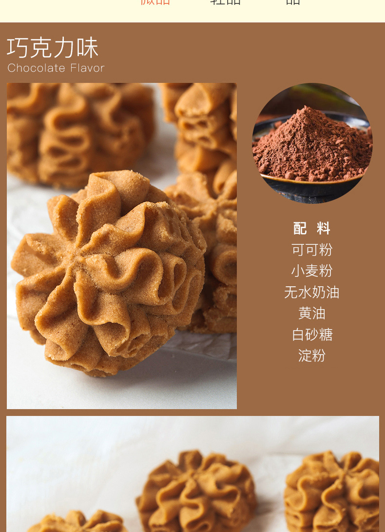 天猫卜珂巧克力旗舰店69.9元,可领30元优惠券,实付39.9元到手,原味+巧克力味+抹茶味三种口味混合装。精美铁盒装,精选精贵食材,造就超美味。明星吃法:冰激凌曲奇冷冻一会,像冰激凌一样入口即化。优质原料制作成精致的小花造型,入口酥脆,唇齿流香。精美铁盒包装,盒内有防护垫和吸油纸,层层保护不易碎,包装精美送人也上档次。