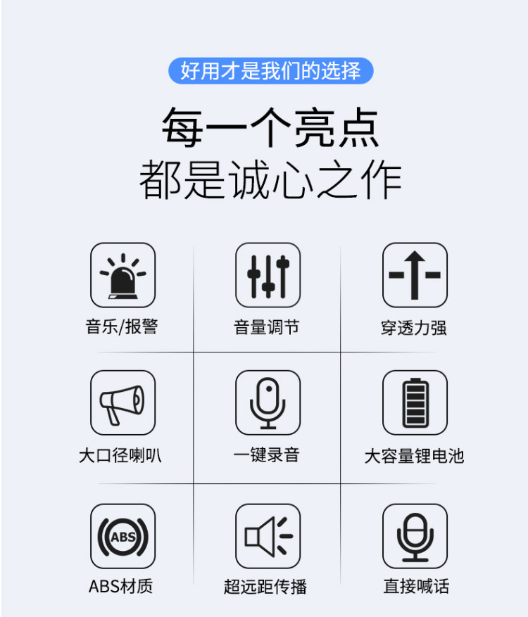 精选优质的ABS材质,手持喊话器,好喇叭,轻松呐喊,清晰震撼,大容量电池,可以录音,超远距传播,穿透力强!领券链接点此
