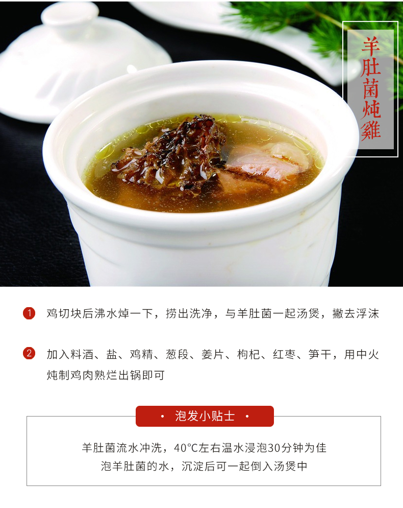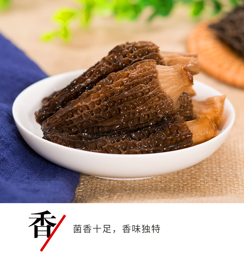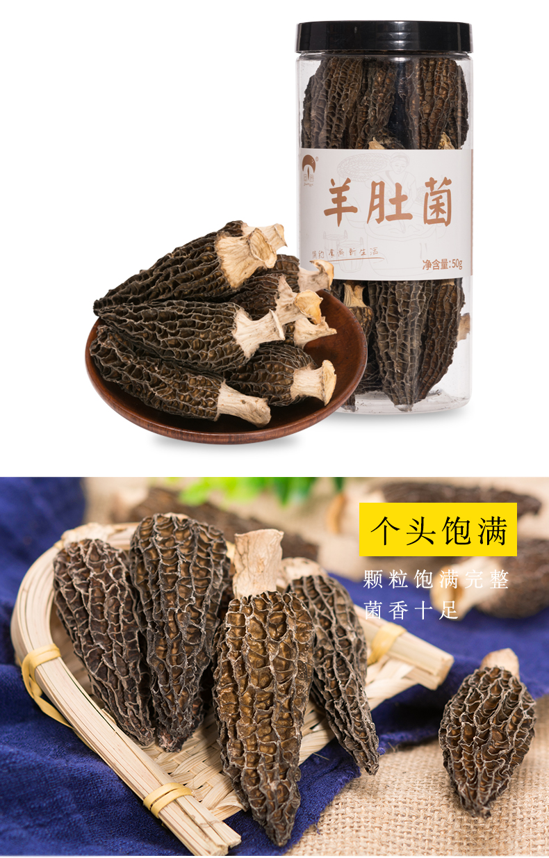 50g干羊肚菌泡发后相当于500g鲜羊肚菌,干羊肚菌的保质期长,有1~2年之久,而鲜羊肚菌的保质期仅3天,对保存要求非常非常高。