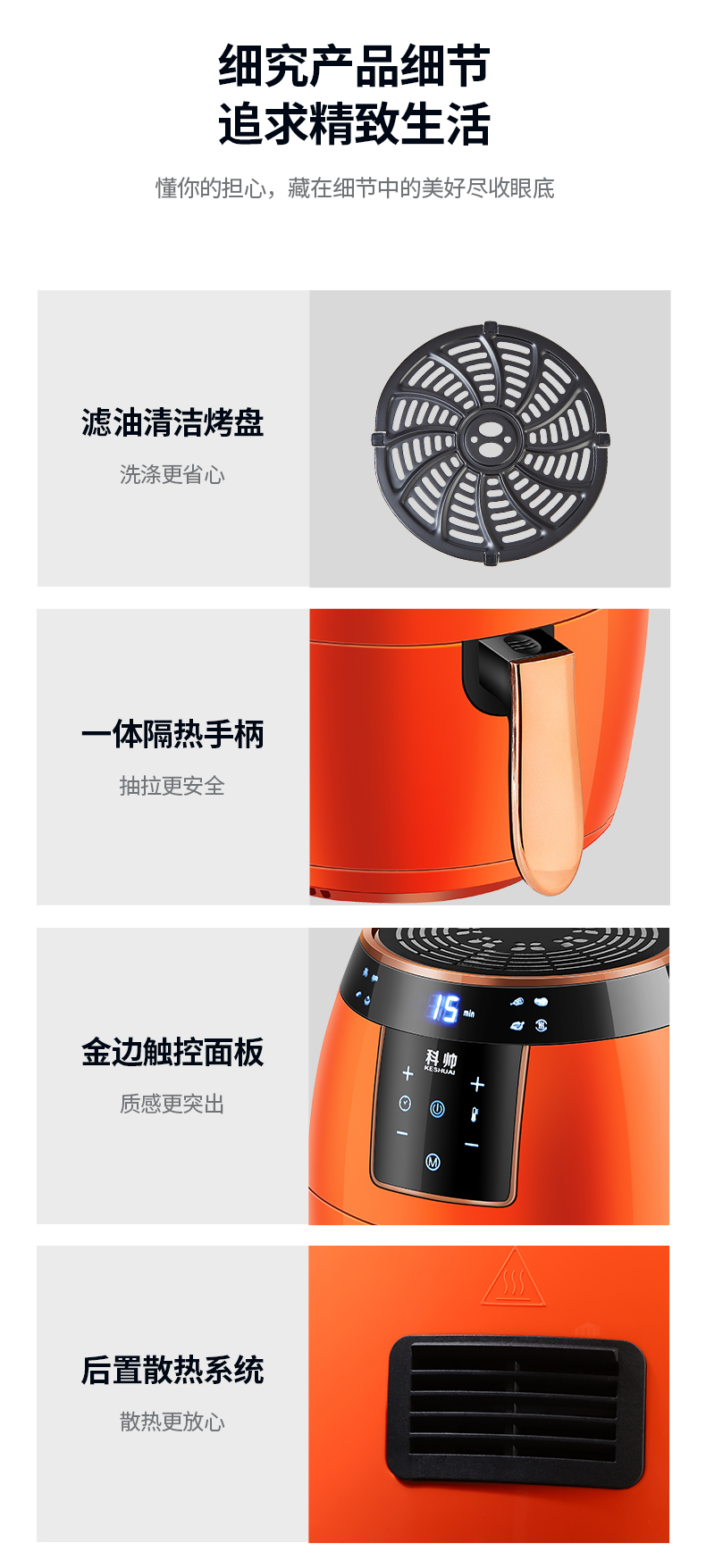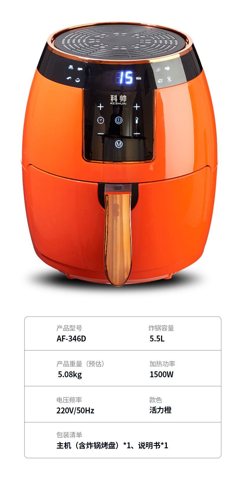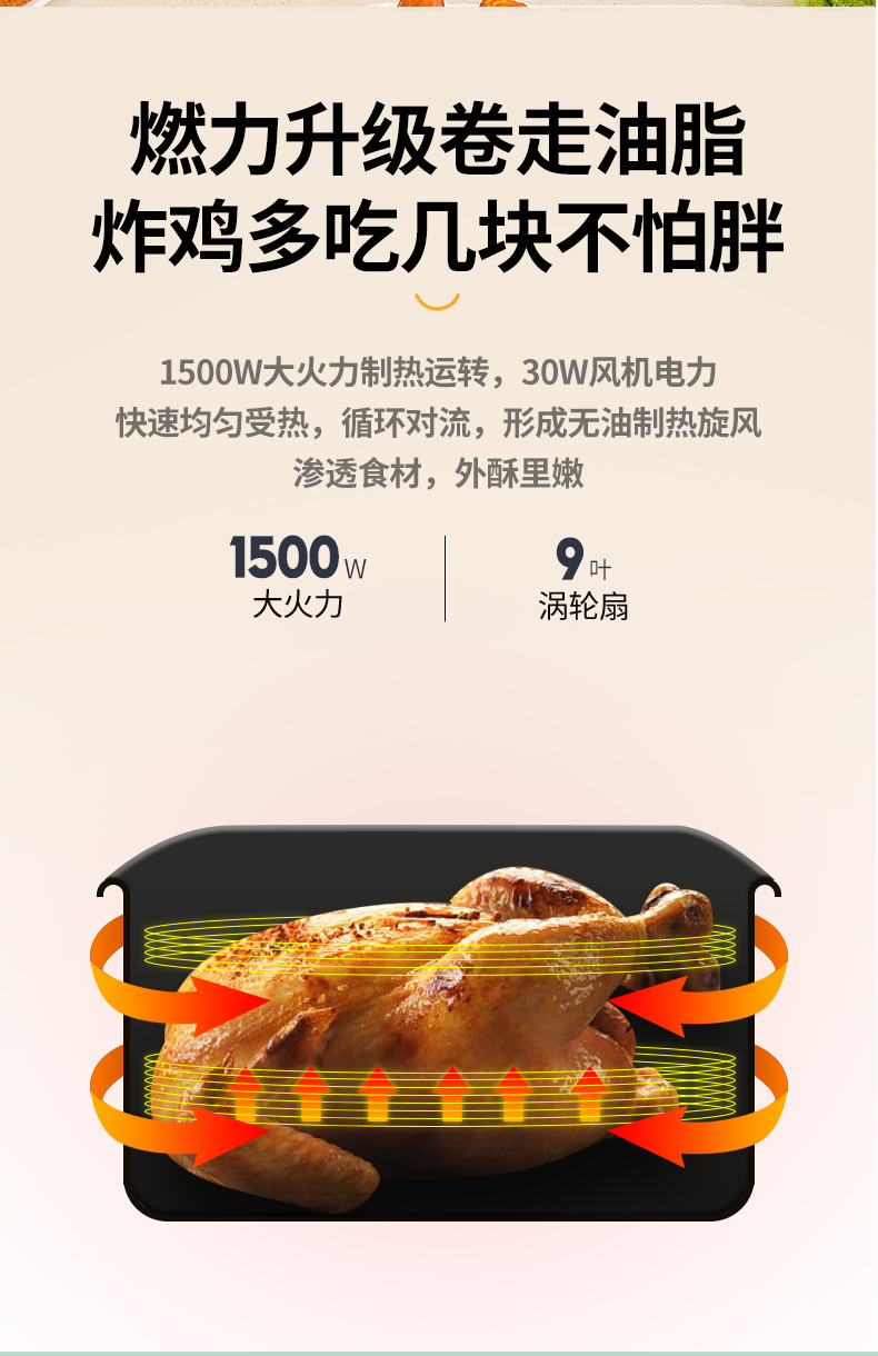 天猫科帅旗舰店329元,可领130元优惠券,实付199元到手,第2款此价,升级 NTC智能触控,八大菜单一键触控,操作更加简单方便,1500w大火力,配合30w电机、9叶涡轮扇,循环对流,快速均匀受热,逼出食材本身油脂,外酥里嫩,更健康。