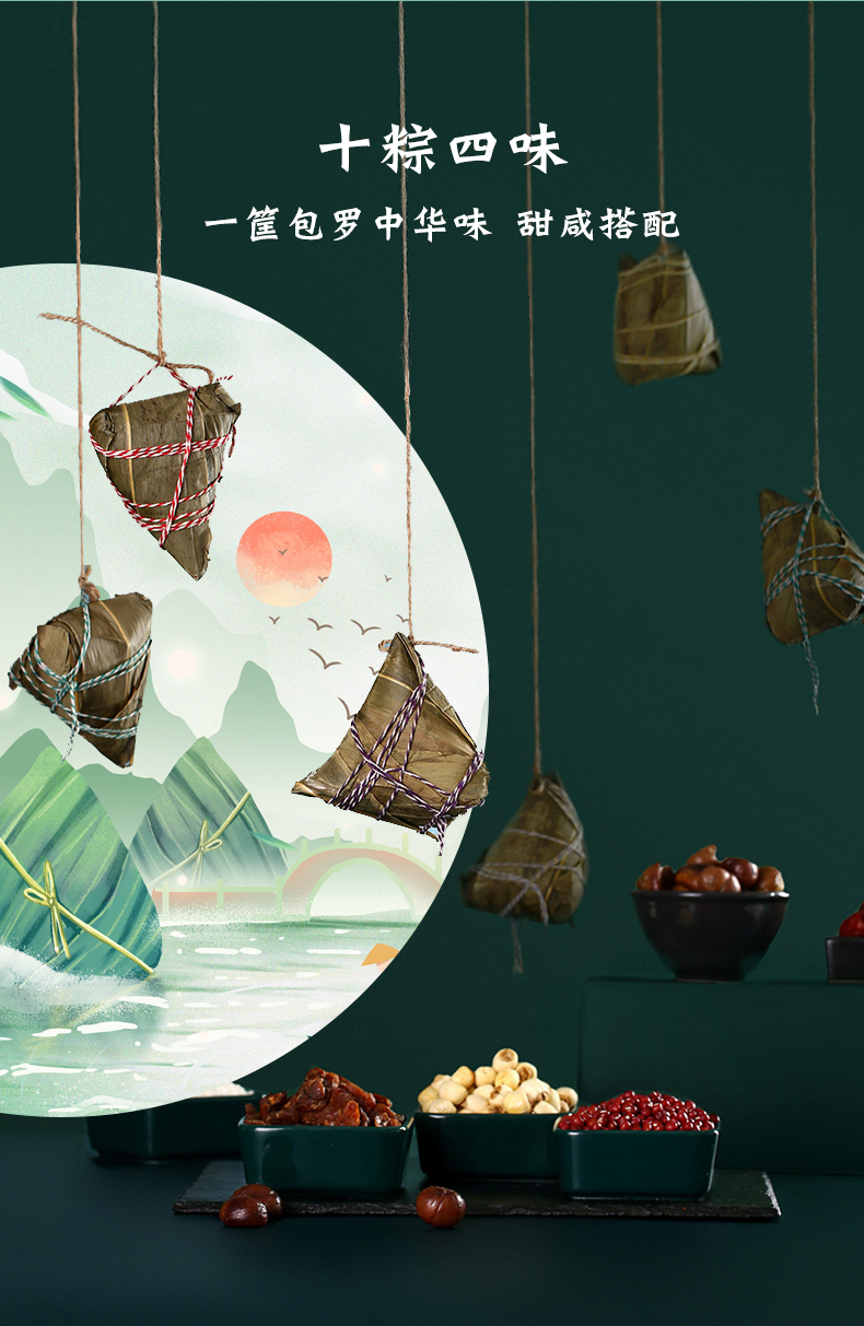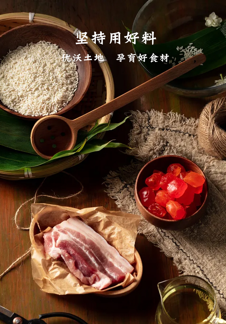 这款白象 × Bainatas 百纳塔斯 端午粽子手工竹篮礼盒,规格:1400g,内含鲜肉粽4枚、蛋黄鲜肉粽2枚、豆沙粽2枚及蜜枣粽2枚,一筐包罗中华味,甜咸搭配,精选优渥土地孕育的上乘糯米、高山箬叶,十道工序,还原传统捆扎手艺。