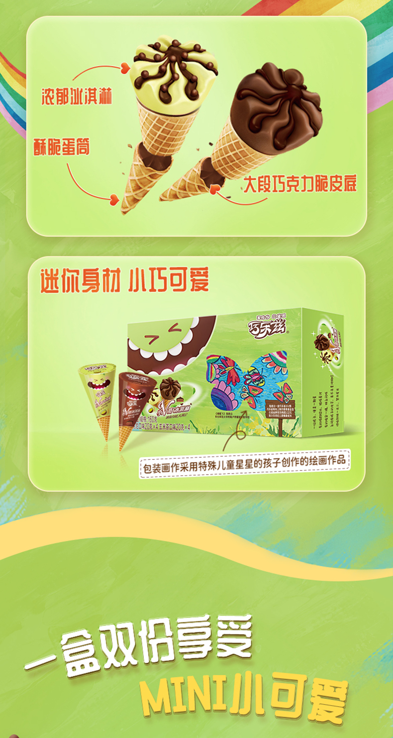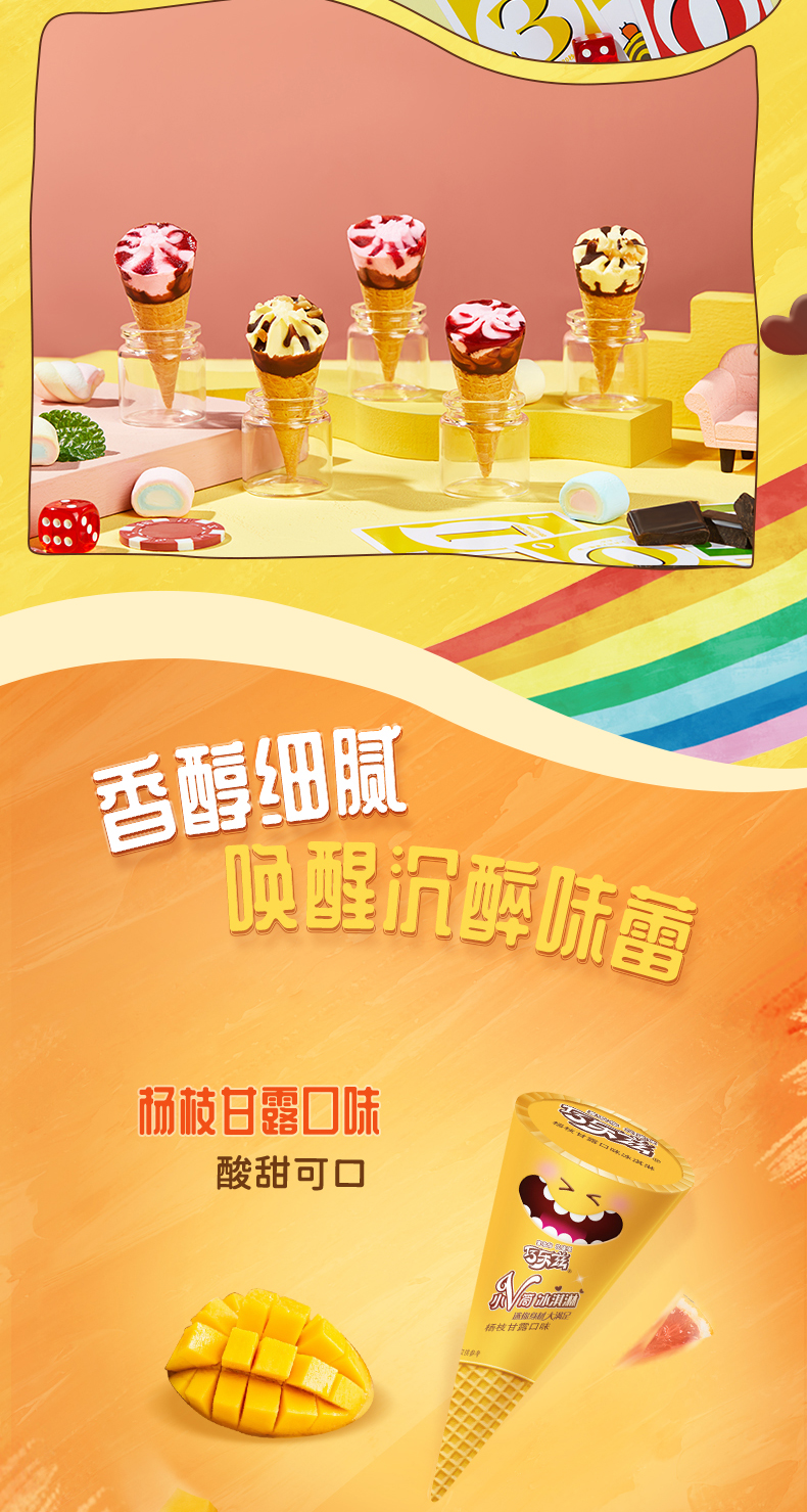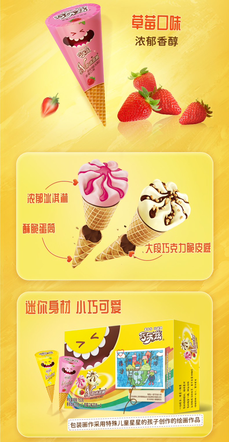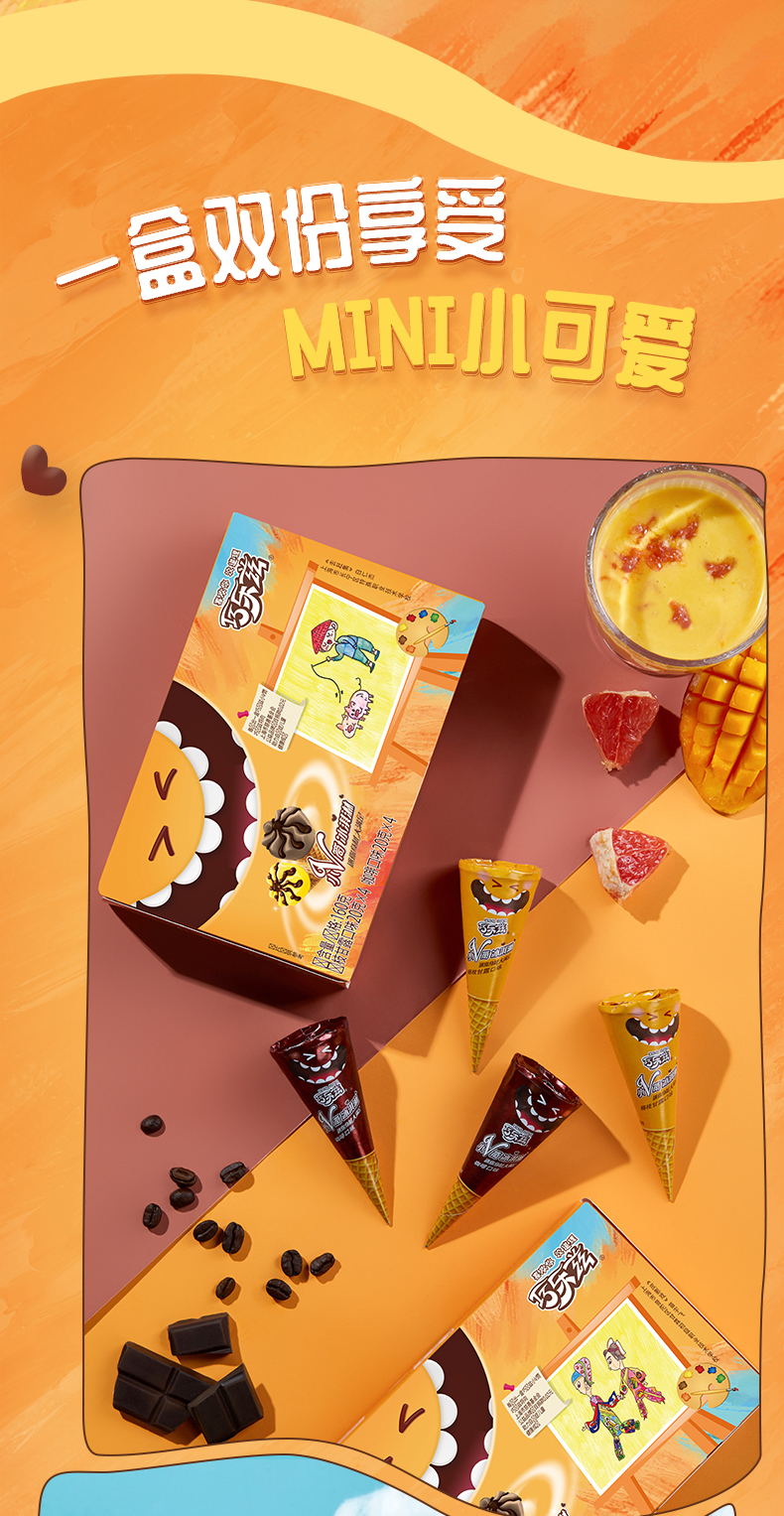 这款伊利 巧乐兹 脆皮大脆筒甜筒冰淇淋,包括玄米茶口味&布朗尼+香草&草莓+杨枝甘露&咖啡口味组合,浓郁香醇,小支装,迷你可爱。