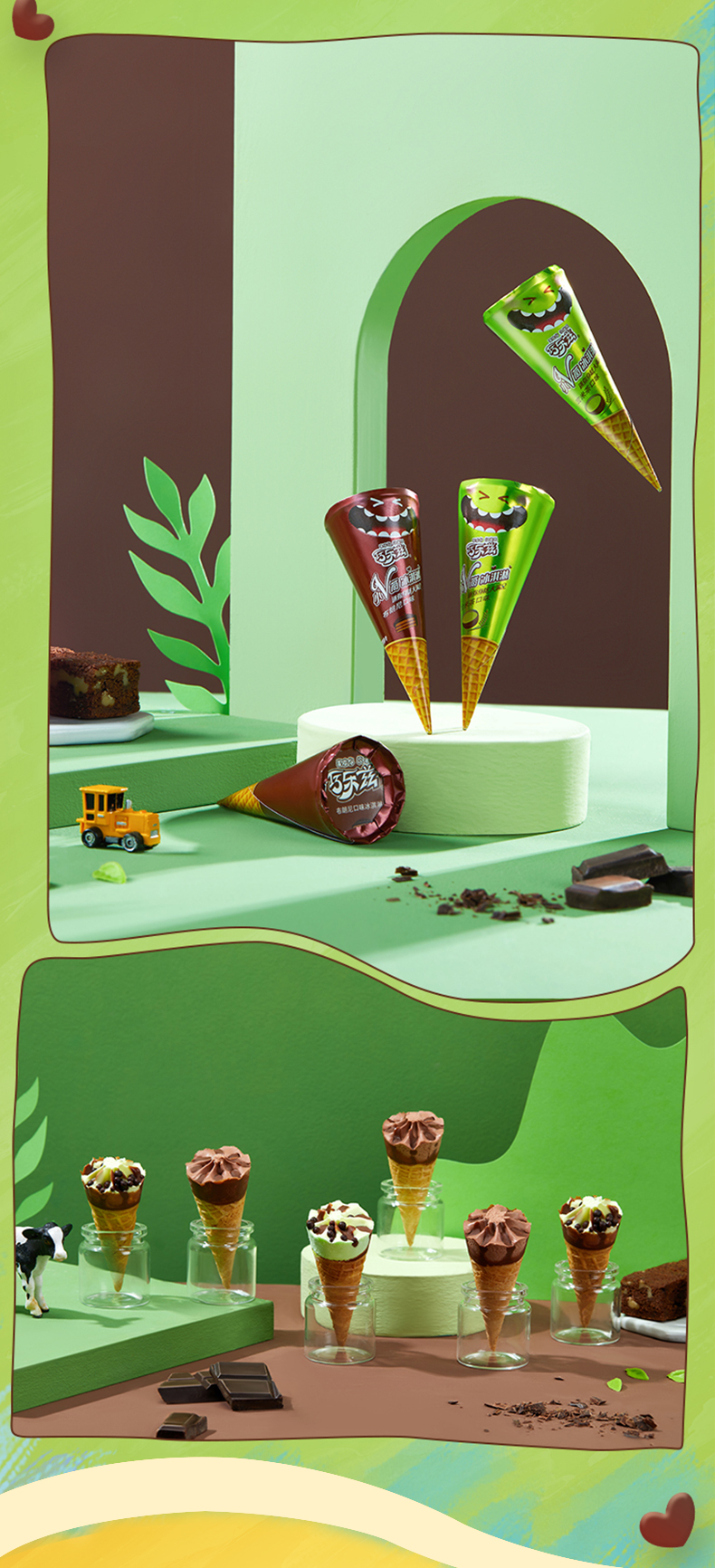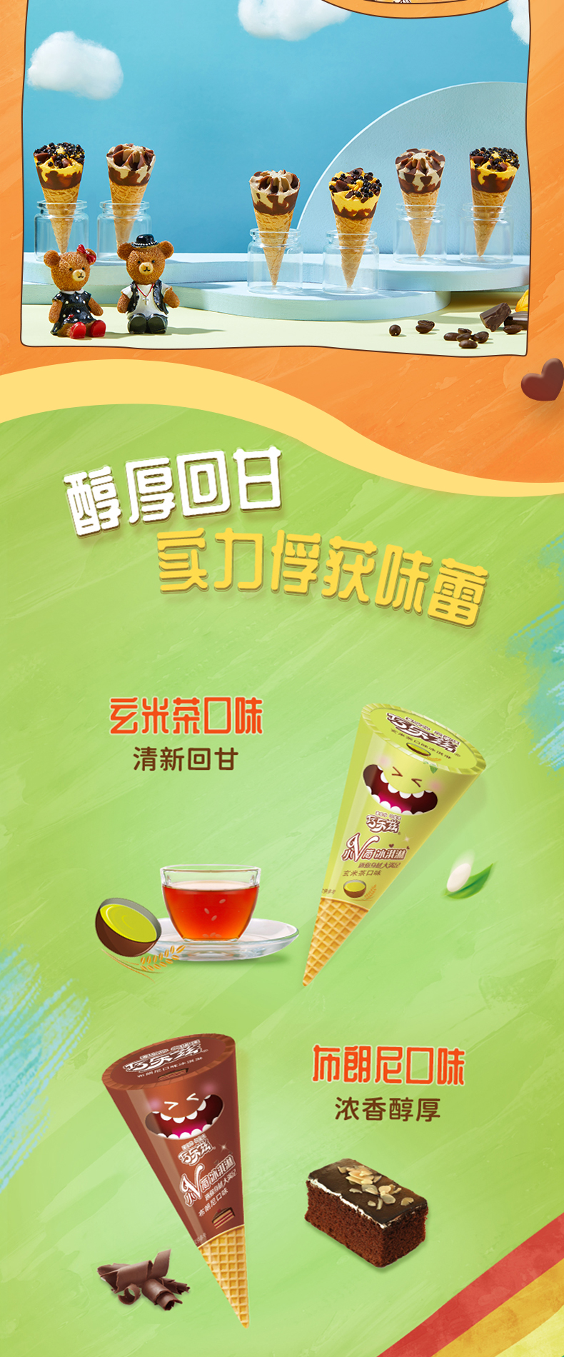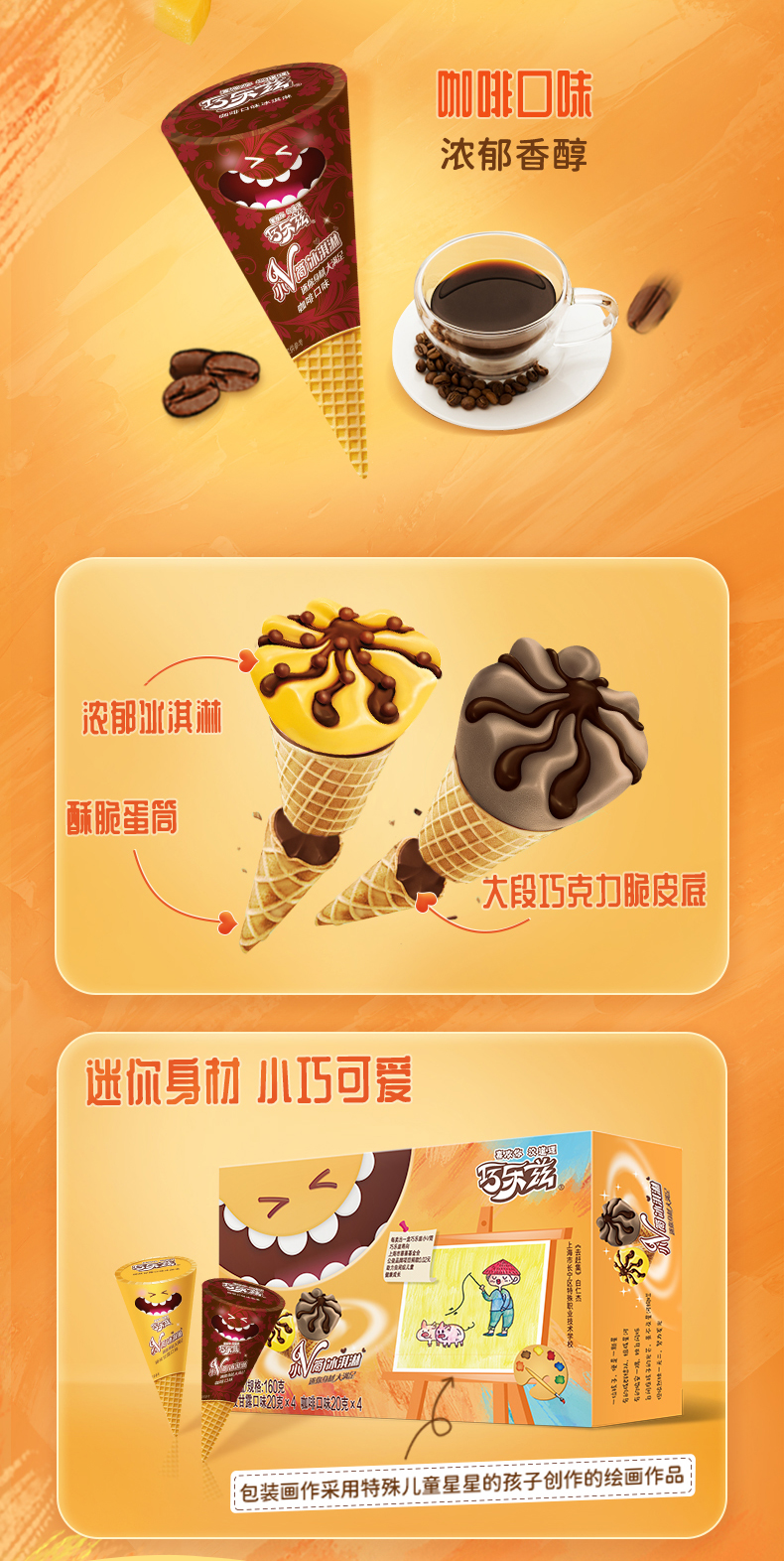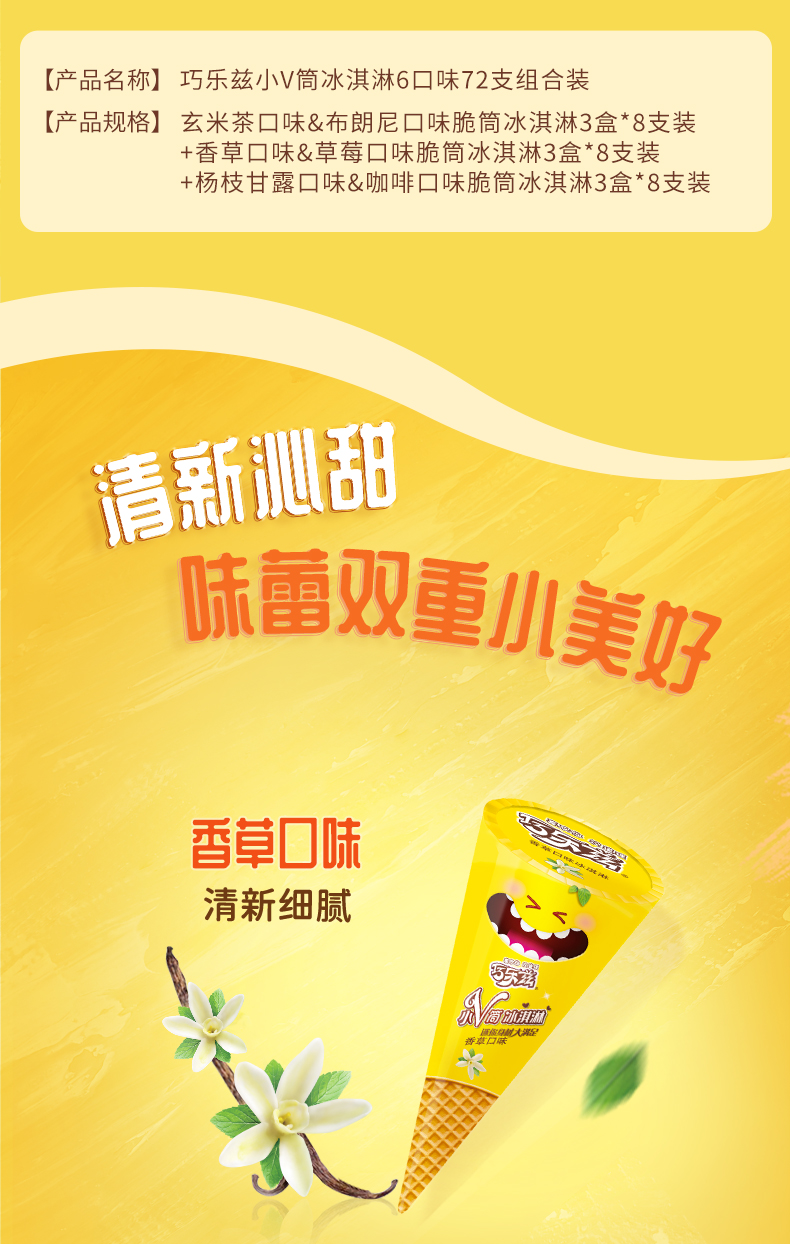 这款伊利 巧乐兹 脆皮大脆筒甜筒冰淇淋,包括玄米茶口味&布朗尼+香草&草莓+杨枝甘露&咖啡口味组合,浓郁香醇,小支装,迷你可爱。