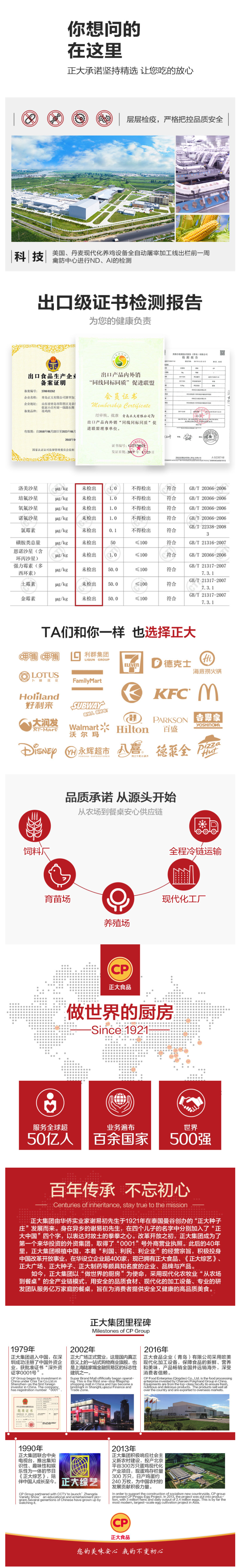 正大食品是正大集团旗下的一个食品品牌,包括鸡鸭猪等生鲜和熟食系列产品。采用荷兰、美国等国家的先进加工设备,保证了食品的新鲜、营养和美味,符合现代生活需要,畅销全国并远销海外市场,深受消费者信赖。国家体育总局训练局运动员专用产品。正大集团旗下一条龙企业生产的“双大”牌、“正大秦皇”牌、“德大”牌鸡肉为中国名牌产品。