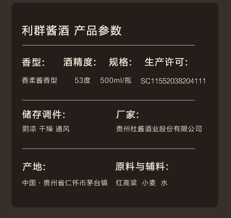 贵州杜酱酒业股份有限公司成立于2011年,前身是1983年成立于茅台镇中华村的茅华酒厂。经四代人的传承。位于酱香白酒核心产区——贵州茅台镇桂花村。与茅台酒厂同享当地得天独厚的气候,环境,水源,原料,工艺等酿酒资源。经过过反复研究实验和公司酒体设计师赵吉龙无数次打磨,巧妙地去除了传统酱香白酒枯、糊、苦的味道,形成杜酱独特的香柔风格。