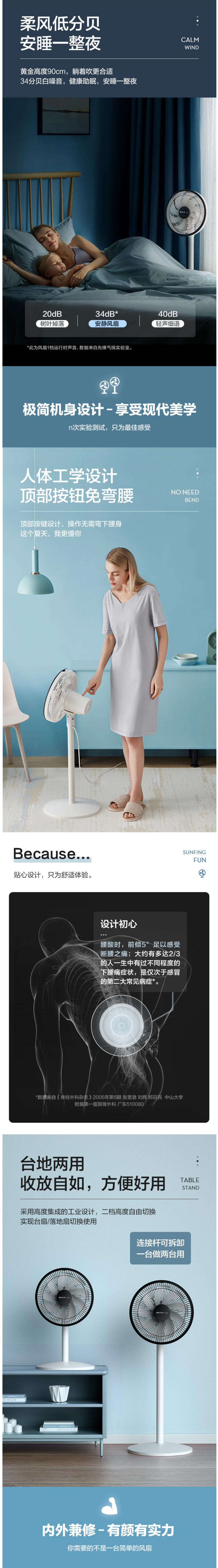 时会用自家研发的9片蝉翼扇叶,相比于普通的3叶扇和5叶扇,能将风切割的更细,出风更柔和,风感更舒适。搭配飓风网罩,外网比内网便7°,能达到8m的超远送风距离。